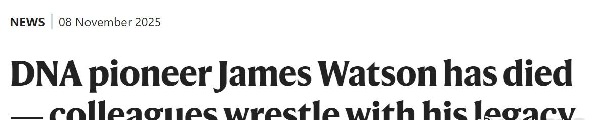 詹姆斯·沃森——双螺旋光环下的争议人生! 11月8日,Nature杂志发表文章表