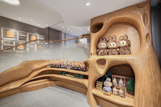 🟡 设计团队THIRTY NINE提取MOLLY、LABUBU、SKULLPANDA等核心IP的视觉元素,将二维图像转为三维空间。木质立柱错落,流线型曲面环绕四周,光影变化间,每个角落充满沉浸感与探索欲。 🟡 不同于传统潮玩门店常见的金属与霓虹,设计采用自然木纹、水泥漆、GRG曲面结构,营造温暖的空间氛围。 IP形象不仅是装饰,更成为空间的一部分,让建筑、装置与潮玩文化深度融合。 🟡 展陈动线层次分明,IP互动装置与拍照屋相结合,打破单一的商业展示逻辑。无论是LABUBU的森林秘境,还是MOLLY的梦幻剧场,设计让潮玩不止于收藏,更成为可触摸、可游览、可感知的世界。 🟡 项目:POP MART 北京三里屯 设计:THIRTY NINE 摄影:云眠摄影工作室 🟡 空间设计 设计案例分享 室内设计 潮玩 泡泡玛特 大人也要玩玩具 设计灵感 审美 店铺设计 商业空间