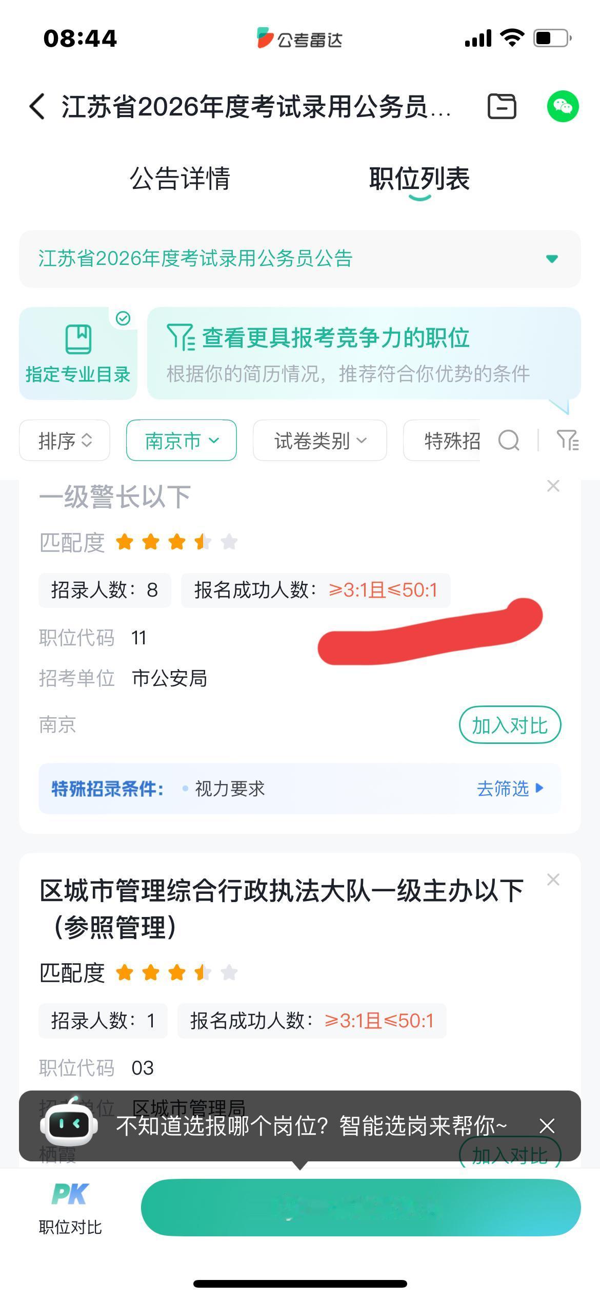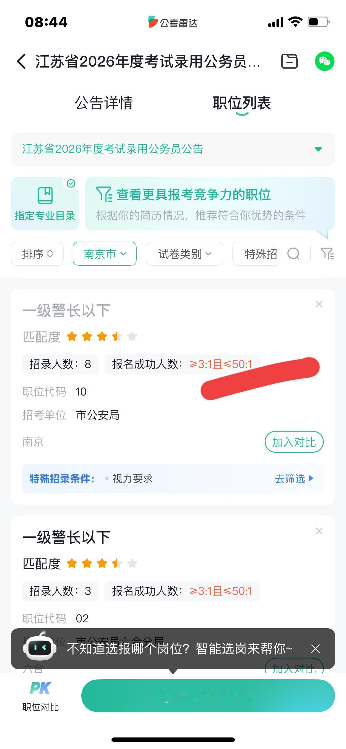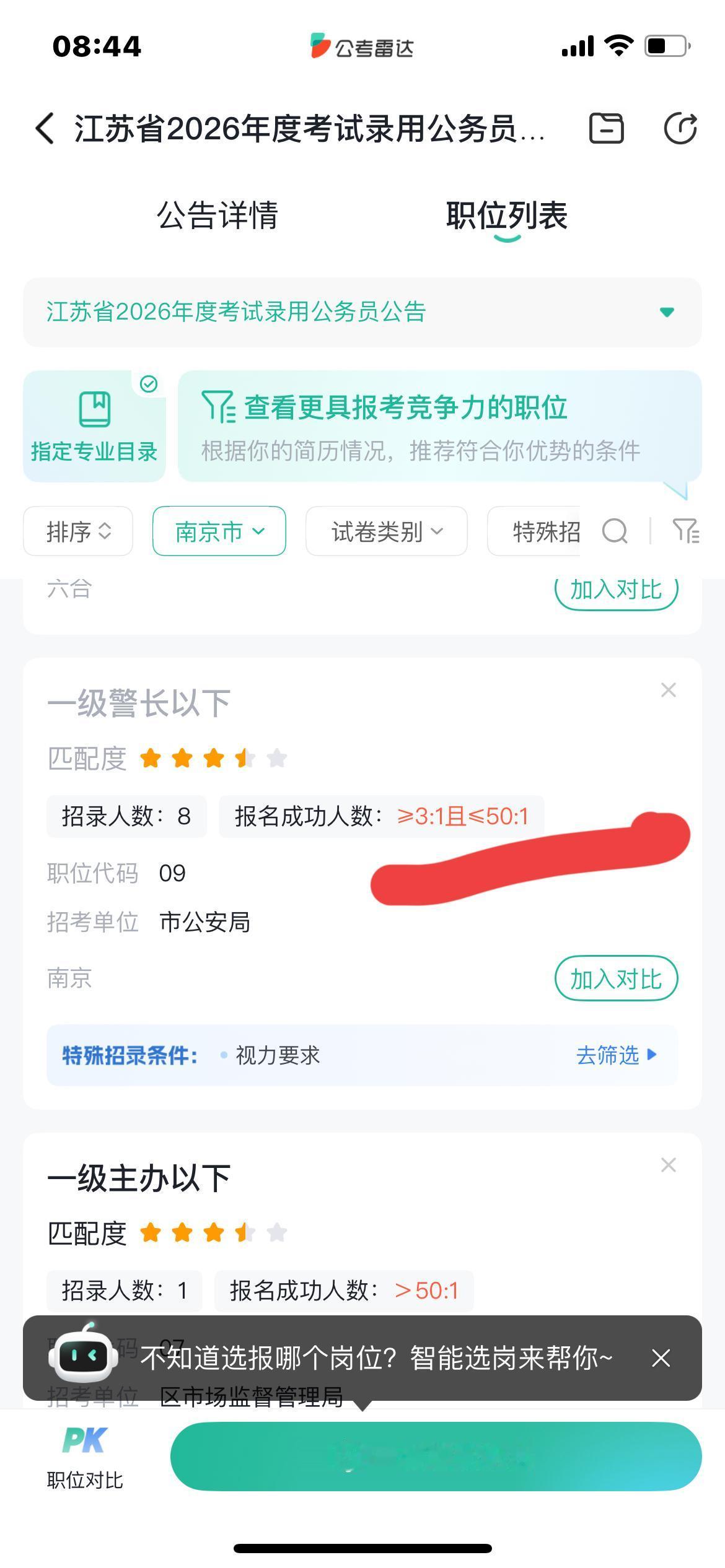 今年各个省的公务员招录人数明显减少 江苏的公务员招录人数是8千多人,比去年少了1000多人 看了南京招录的公安岗位,其中3个岗同时招8人,而且专业要求都是计算机类!报的人数暂时是大于等于3,小于等于50!竞争还不算大! 只是报考南京的岗位进面的分数肯定比其他地区高 还有一项体能测试,日常的训练不能缺少! 去年江苏的公安专业知识可谓是地狱级别! 要说考公安难吧,确实也难,考三门,而且行测申论公安知识占比是433,一门都不能落后,还要体能测试 公考培训宣传公安好考,其实只是报考人数比其他岗位少了一些,竞争没那么激烈,这只是相对! 年龄限制比其他岗位严一些,本科30周岁以内,研究生35周岁以内 今天是江苏省考报名的最后一天了! 愿参加公考的考生选好岗位,好运连绵!