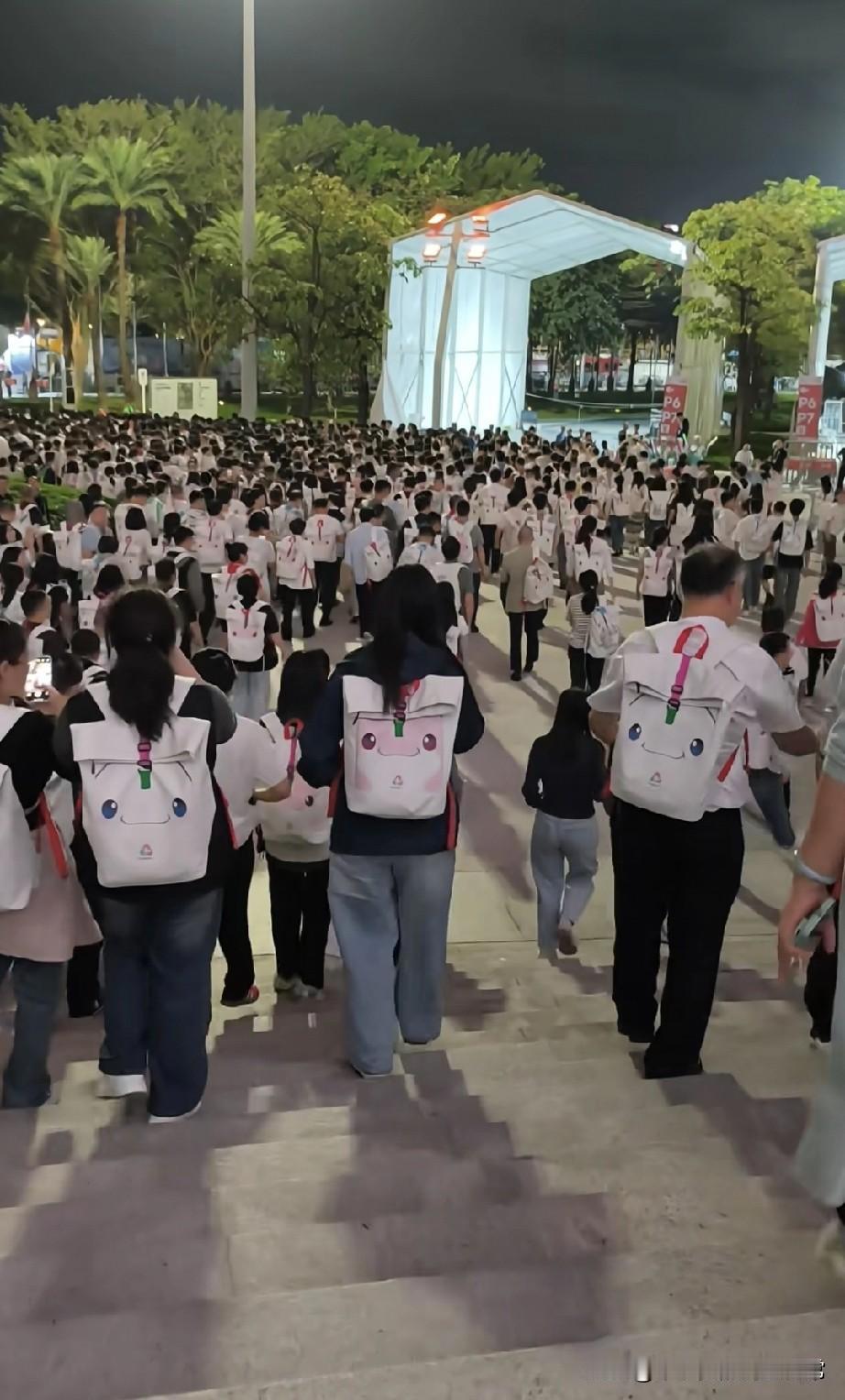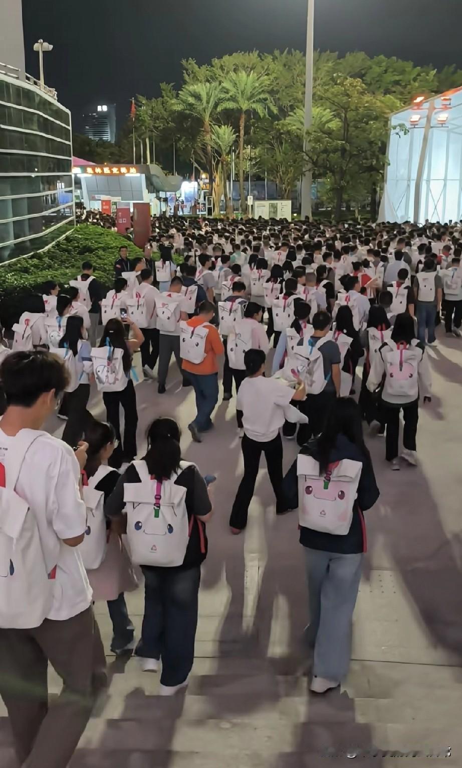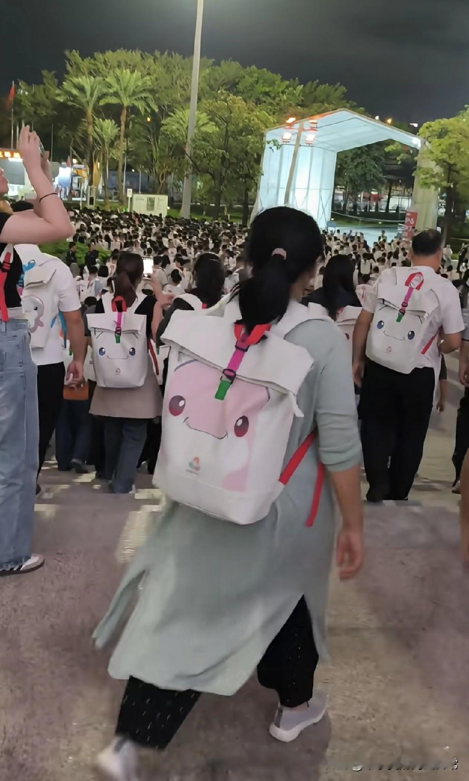 全运会我唯独这场面没绷住! 谁能想到广州奥体中心的夜,能被一群“背卡通包的大人”承包啊? 黑压压的人群里,清一色白书包晃得人眼晕——圆眼笑脸、粉粉嫩嫩,连大叔背都透着股幼儿园放学的既视感。有人调侃“这把年纪终于体验了‘集体放学’”,还有人酸“这包比我工位都可爱”。 现在某鱼已经有人喊“求代购”,但说实话,这包是真的“反年龄”——平时穿西装背它会不会像偷了娃的包? 不过我就好奇:要是这包卖80块,你们真会天天背去上班吗?还是只敢藏在衣柜里当摆件?