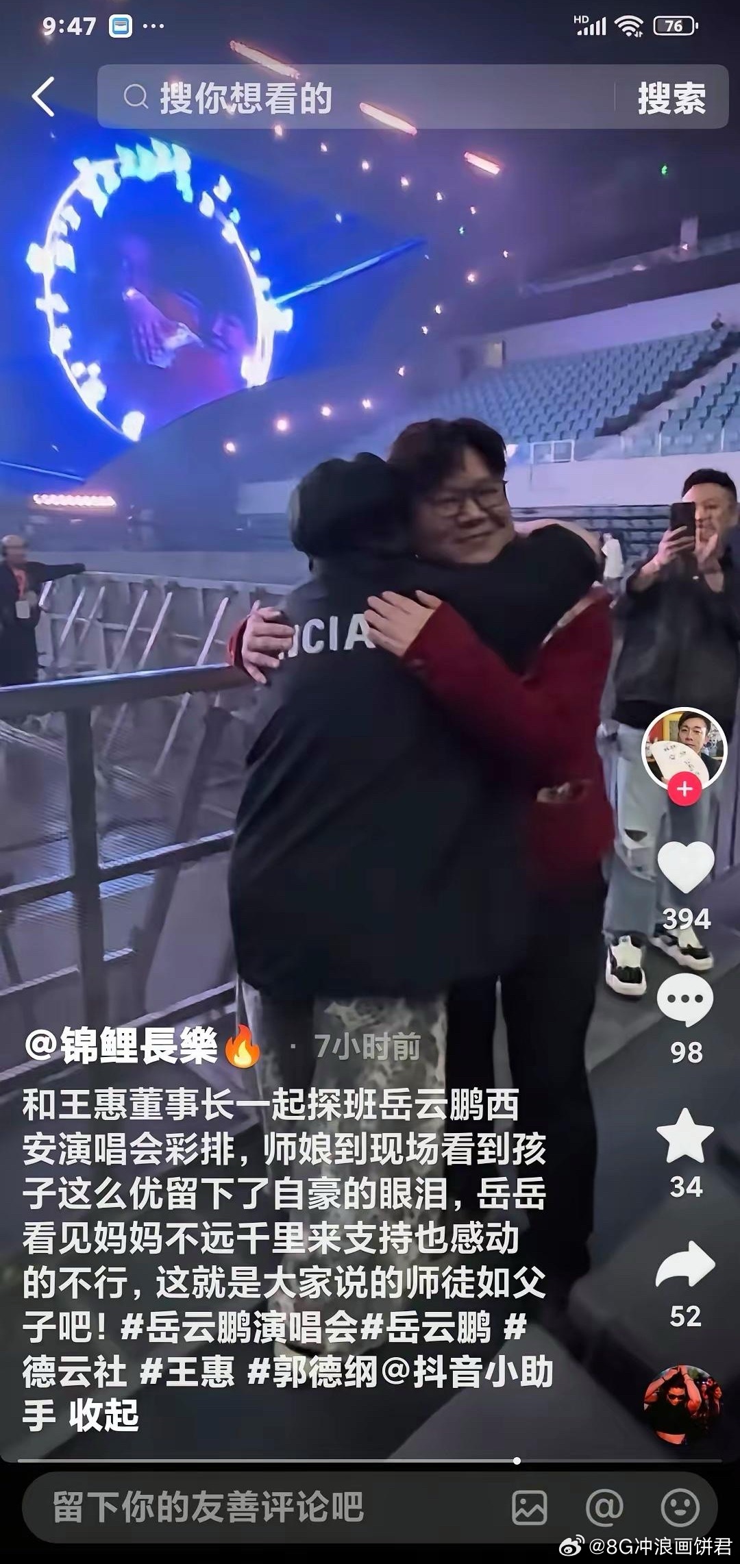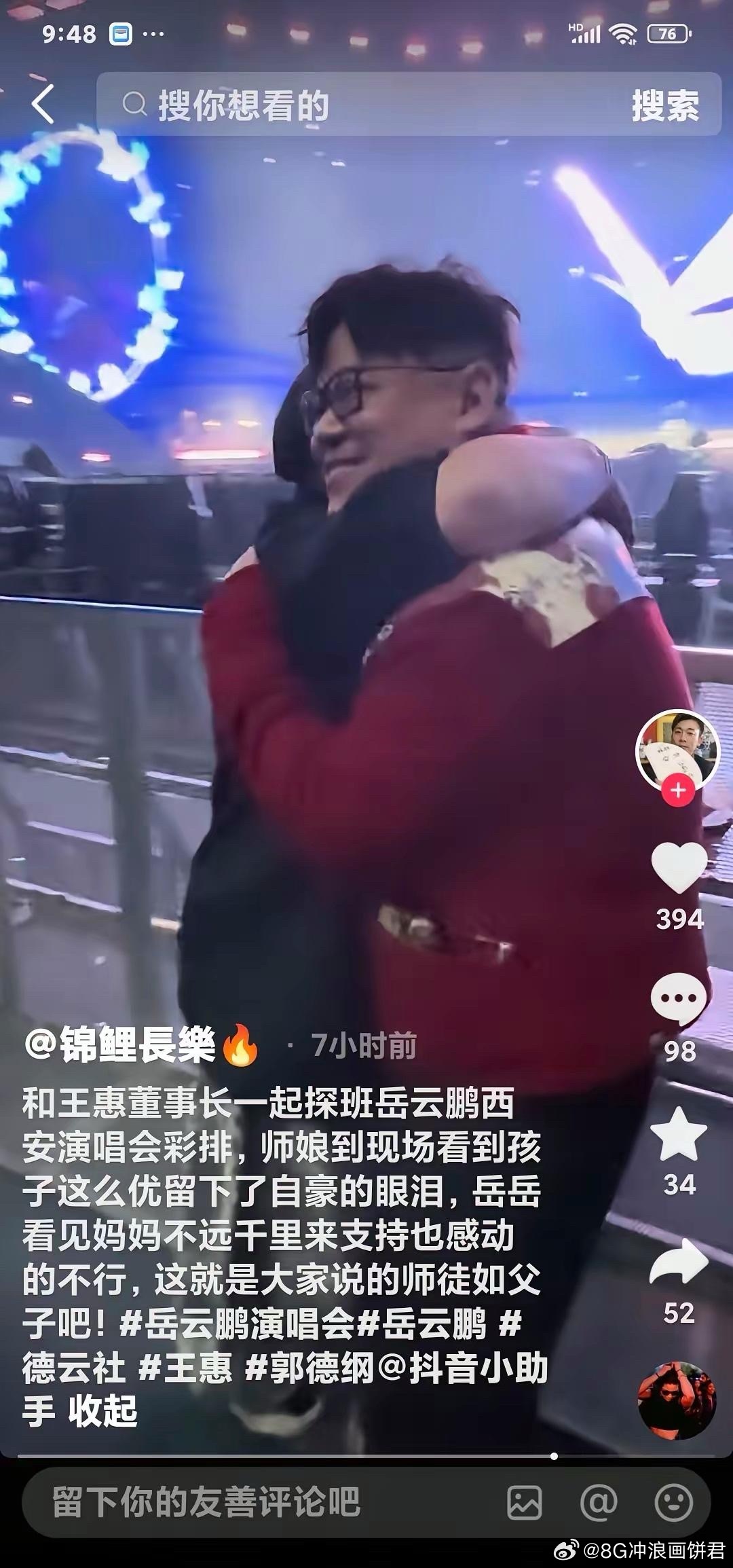 岳云鹏和师娘关系那么好,王惠给他整理衣服,给他拥抱,看着就像亲生母子一般……岳云鹏越来越出息了,在西安开演唱会,师娘特意赶来捧场。师娘贴心的帮他整理衣服,搂着他的脖子给他拥抱,两个人亲如母子。岳云鹏似乎又胖了,看体型已经跟师娘差不多了。作为郭德纲的得意门生,岳云鹏一路走来非常不容易,非科班出身,经历了那么久的努力,他终于成功了。