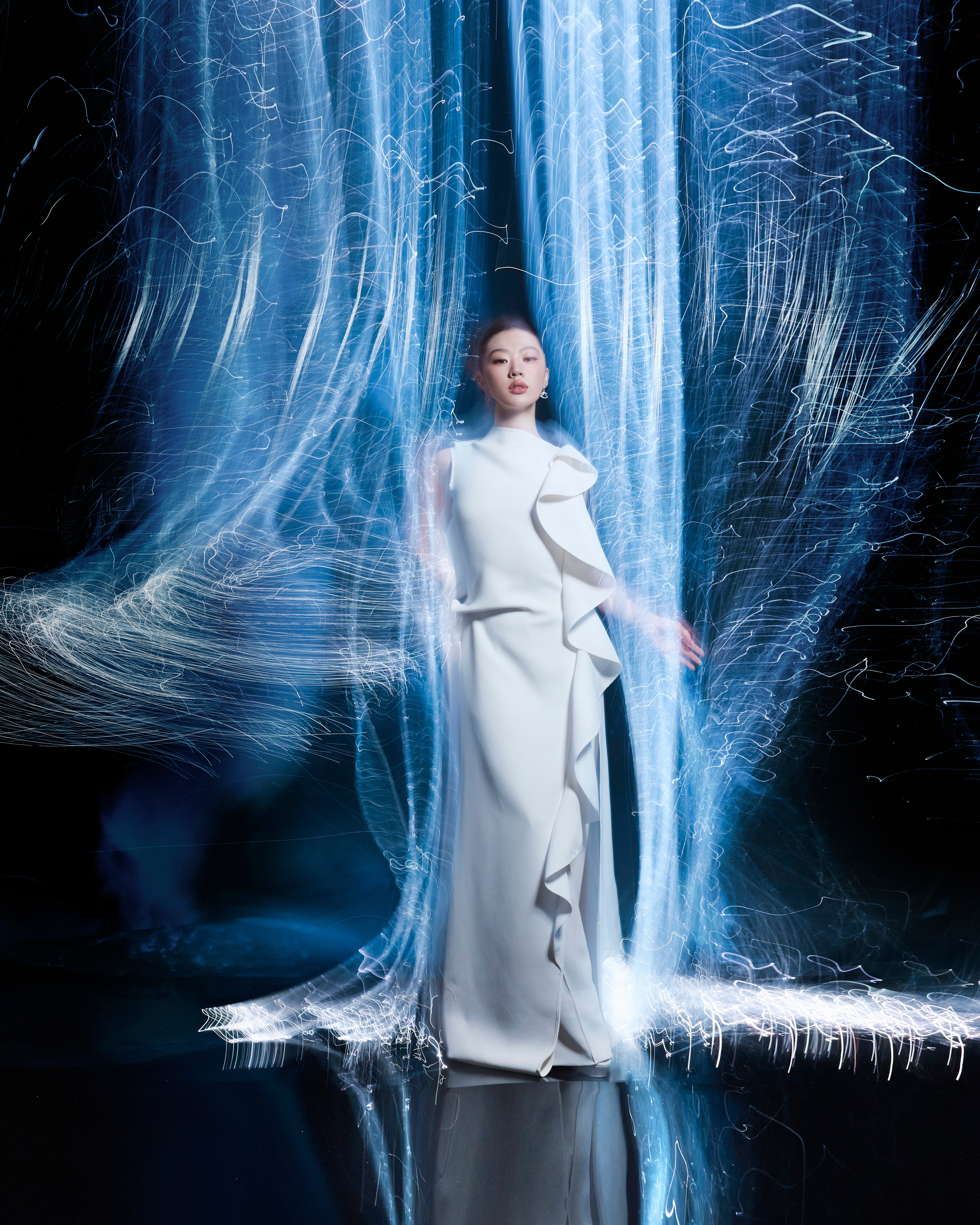 单依纯今日出席第十五届全运会开幕式造型大片,身着Maticevski 2026春夏系列礼服搭配全套Bvlgari宝格丽珠宝,纯白荷叶边礼服配合简洁盘发,大气美丽,纯妹妹就这样凭实力助阵全国盛会啦👏