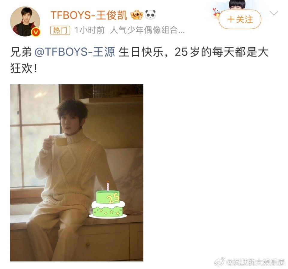可能只是没来得及发吧,每年三小只都不会缺席每个人的生日。而且易烊千玺近年来都是这样低调的相处模式,去年王俊凯生日他也只是在评论区互动,未单独发博,应该是不想将私.人友情转.化为公开话题,被大家讨论吧,他们永远是他们自己啊!易烊千玺 王源王俊凯卡点为王源庆生