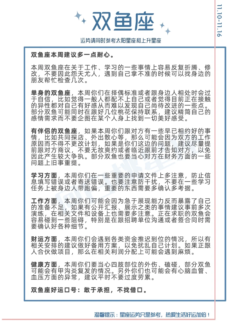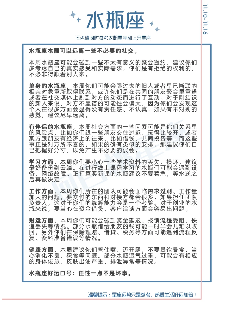 温馨提示:星座运势只是参考,热爱生活好运加倍! 星座 星座运势 十二星座