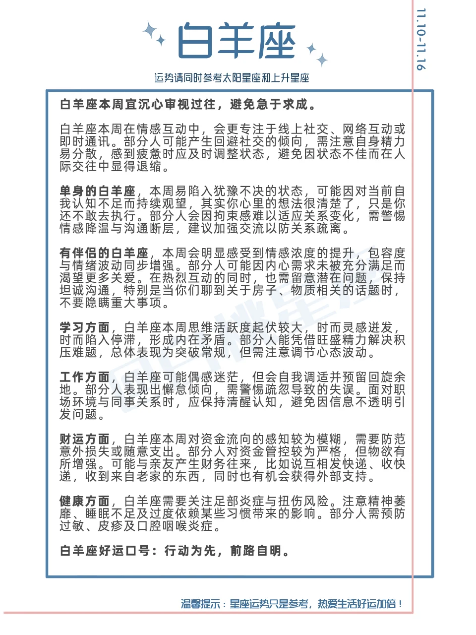 🎉2025年11月10日十二星座每日箴言!白羊座♈:生活平淡,主动加点调味剂