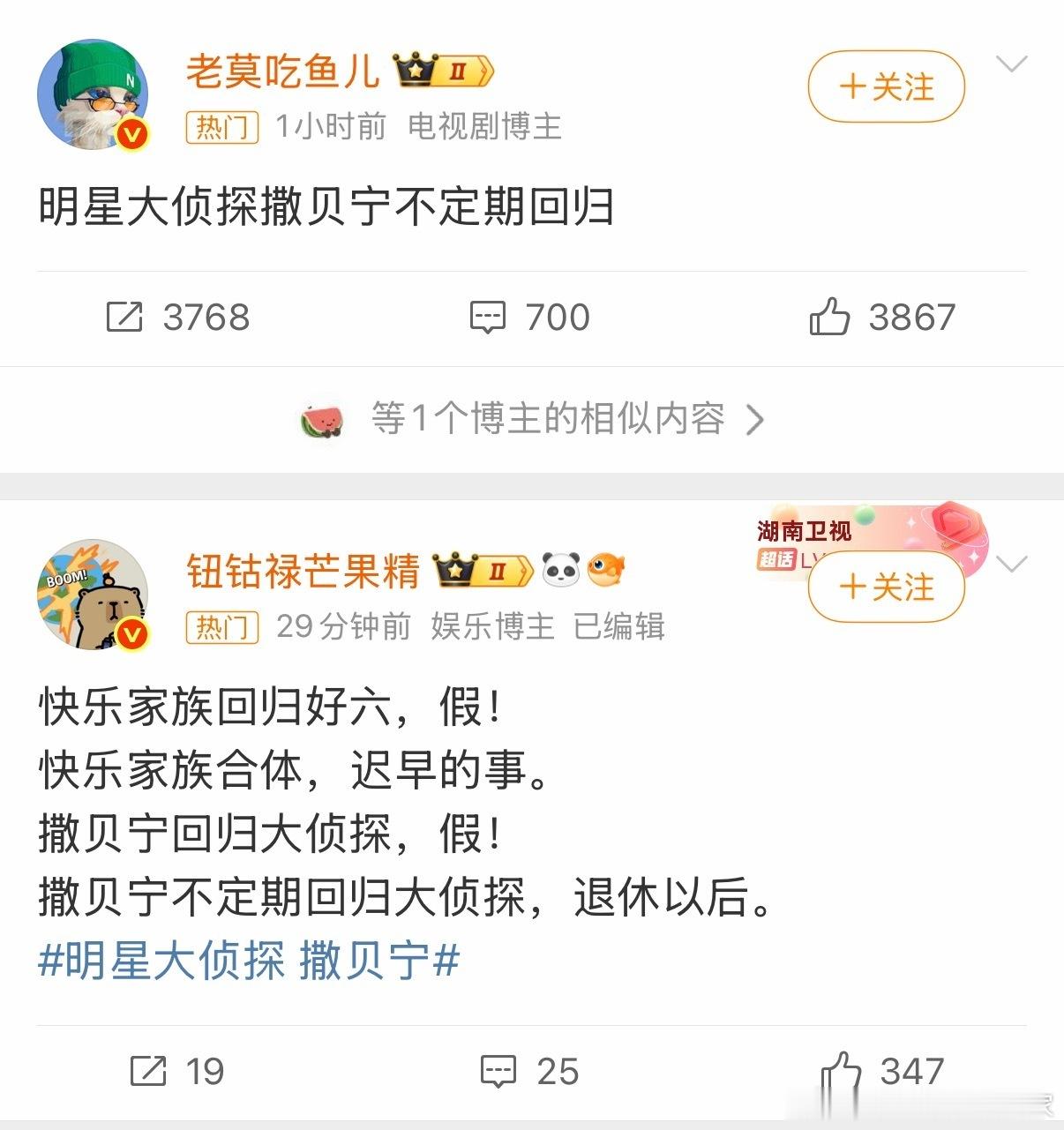 新一季真的没有撒贝宁老师吗?回想起一些撒贝宁在名侦的高/光时刻,撒贝宁老师真的很绅士,虽然每次看起来都是“明灯”的角色,但是也不能否认他的聪明,无数次被撒贝宁的博学广知惊讶到,很期待他能回/归啊!明星大侦探 撒贝宁热点观点