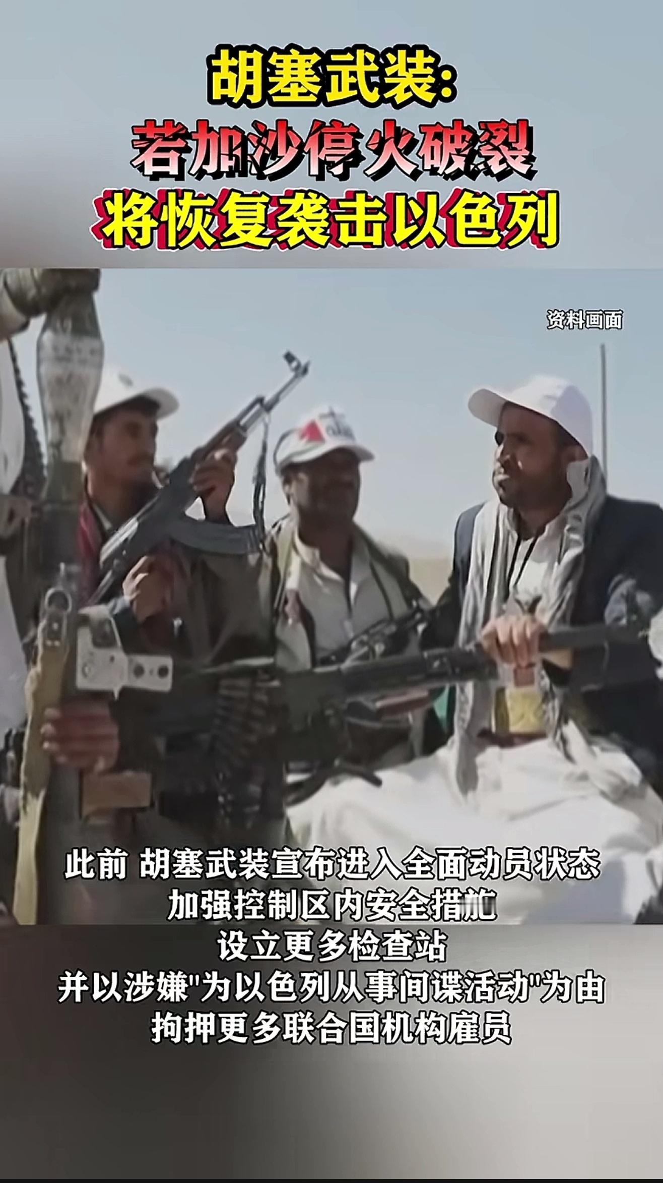 胡塞武装:若加沙停火破裂,将恢复袭击以色列
