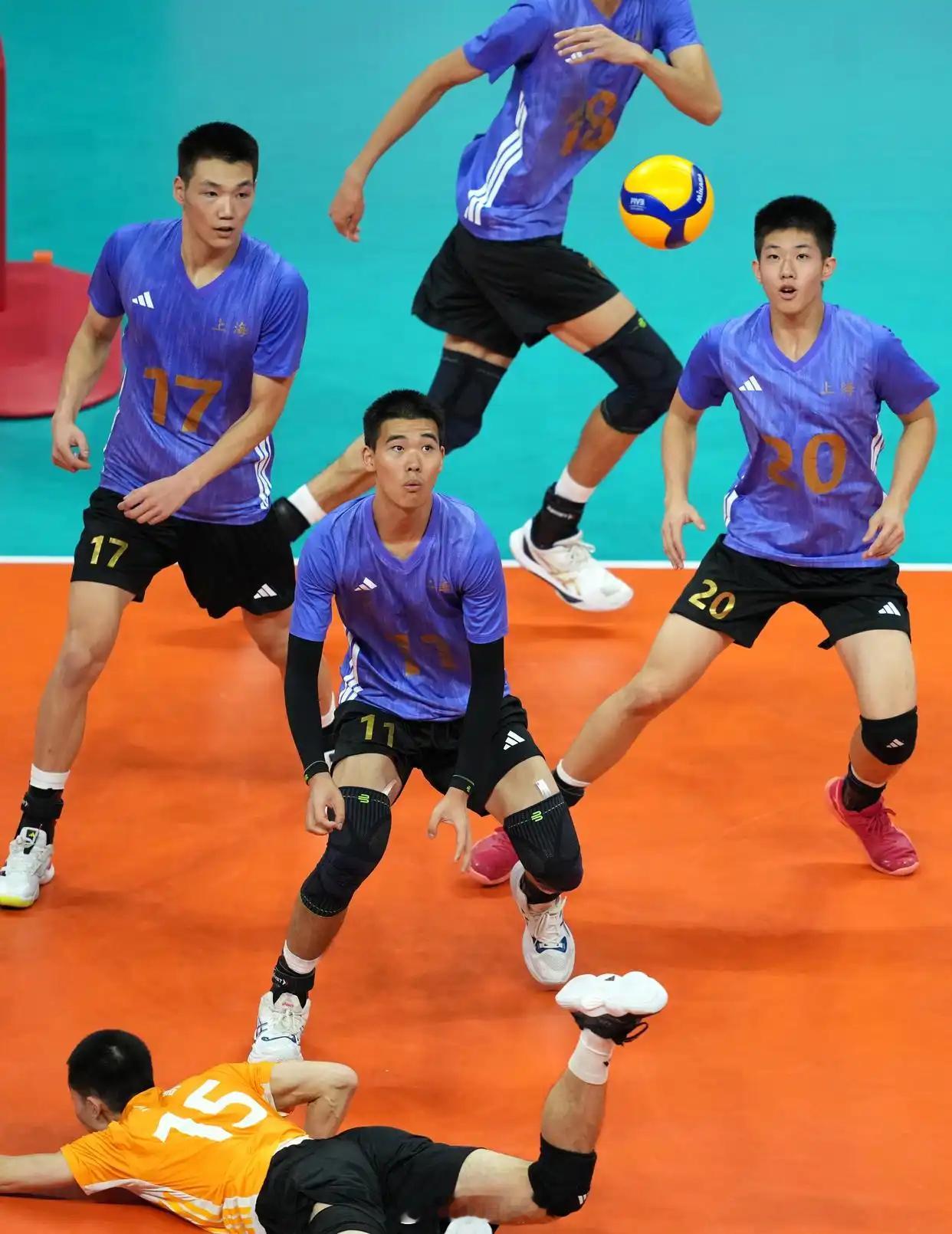 新华社组照:第十五届全运会 U18男排小组赛A组,福建0-3上海(新华社记者 李一博 摄)。