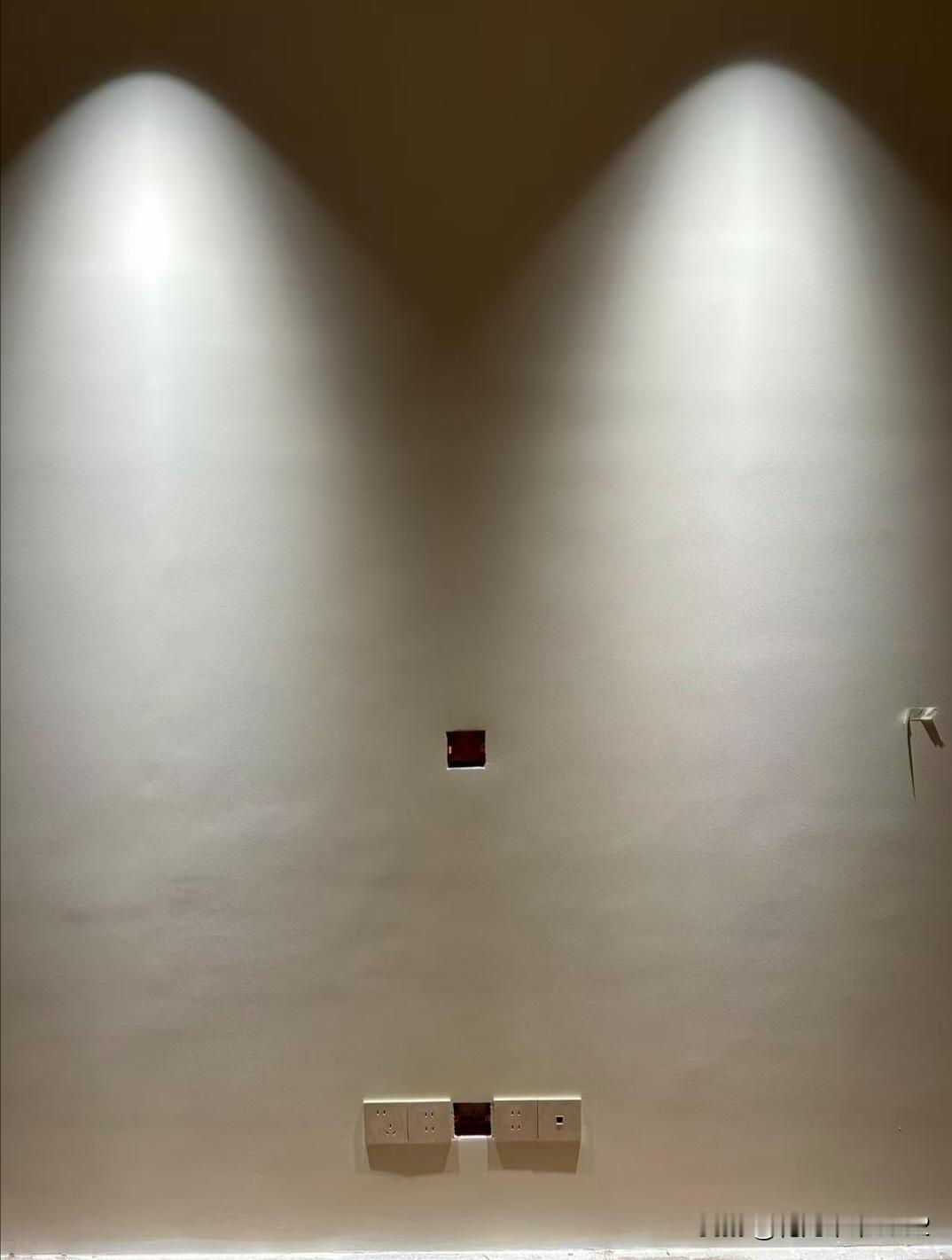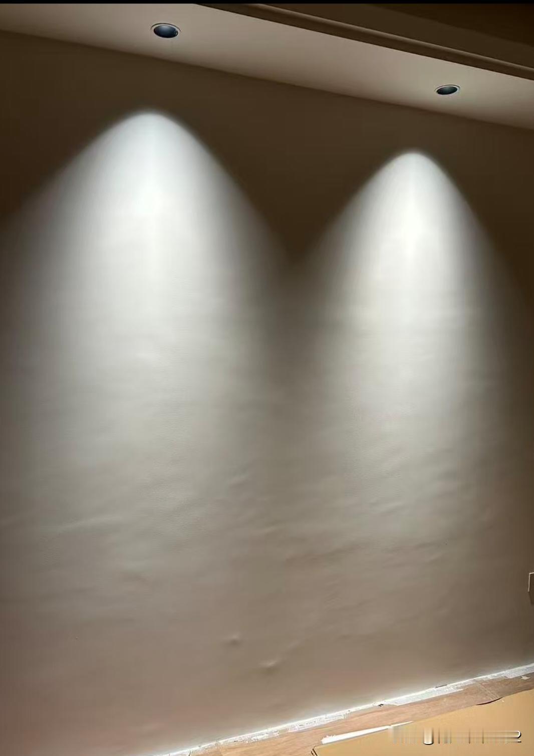 墙面顺平做出来就是这样的吗? 翻大车了!!安装完灯一打开,我惊呆了,工头说是因为我的墙不平,说顺平工艺做出来就是这样的,第二天又说是我买的乳胶漆颜色的问题😂。 救命了,我实在是没办法说服自己。