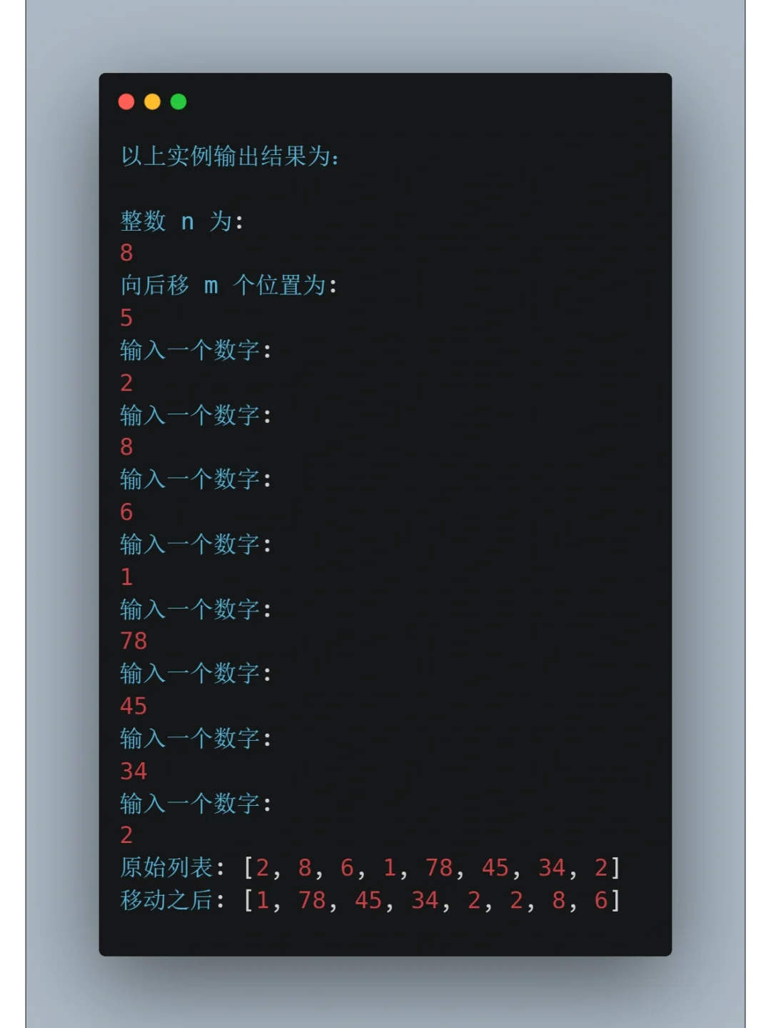 Python经典实例[六R][八R] ~ [一R]题目: 有 n 个整数,使其前面各数顺序向后移 m 个位置,最后 m 个数变成最前面的 m 个数。 ~ [二R]程序分析: 无。 ~
