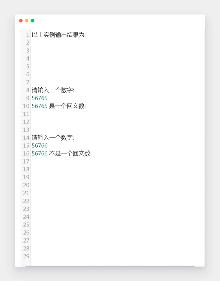 Python经典实例3⃣0⃣ ~ ⭐️题目: 一个5位数,判断它是不是回文数。 即12321是回文数,个位与万位相同,十位与千位相同。 ~ 🌟程序分析: 无。 ~ ❗️❗️❗️本题主要就是学会判断个位和万位,十位和千为位上的数字相同。 ~