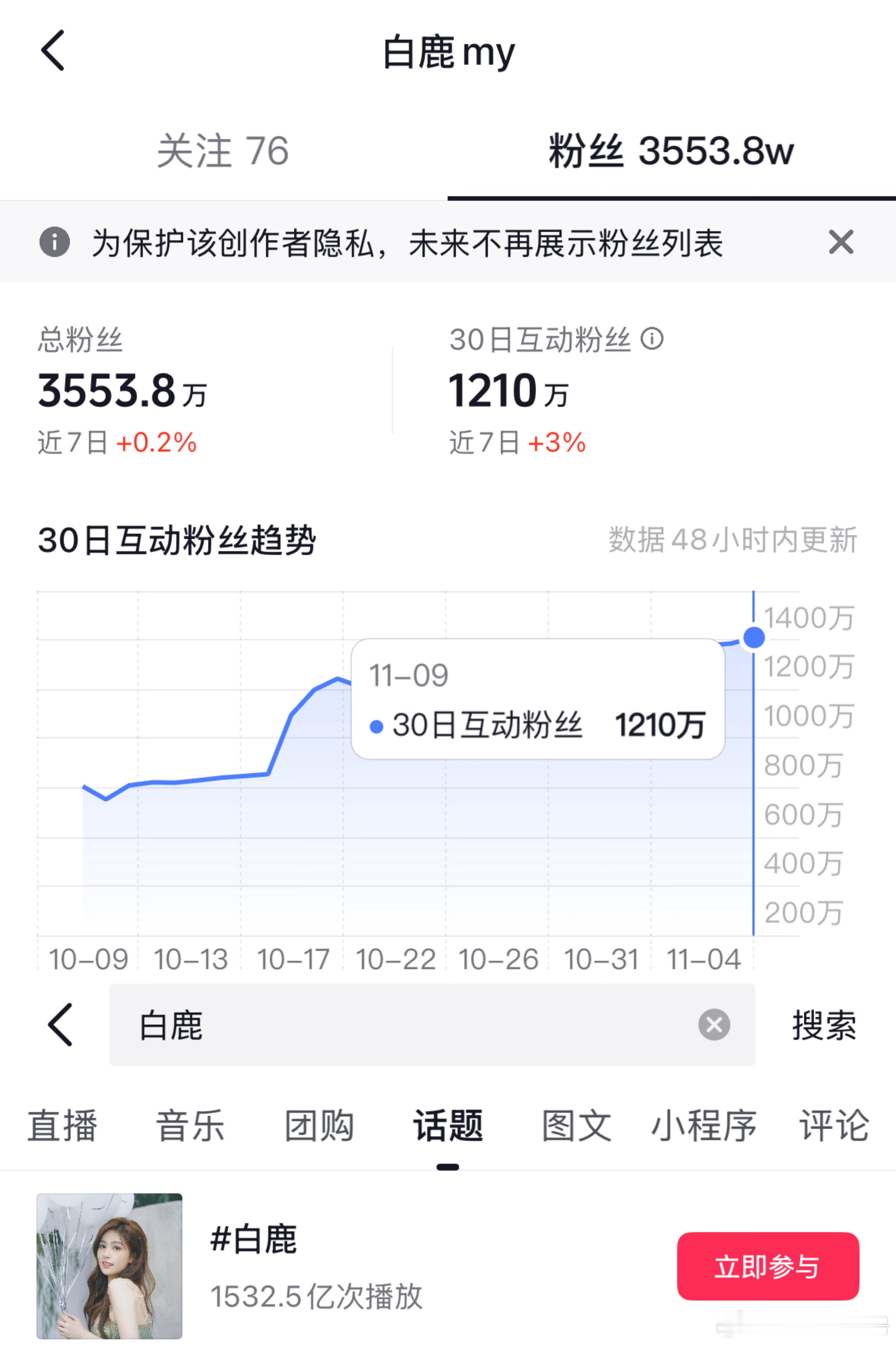白鹿新🫘发布三小时二十二分钟破300w🔥🔥
