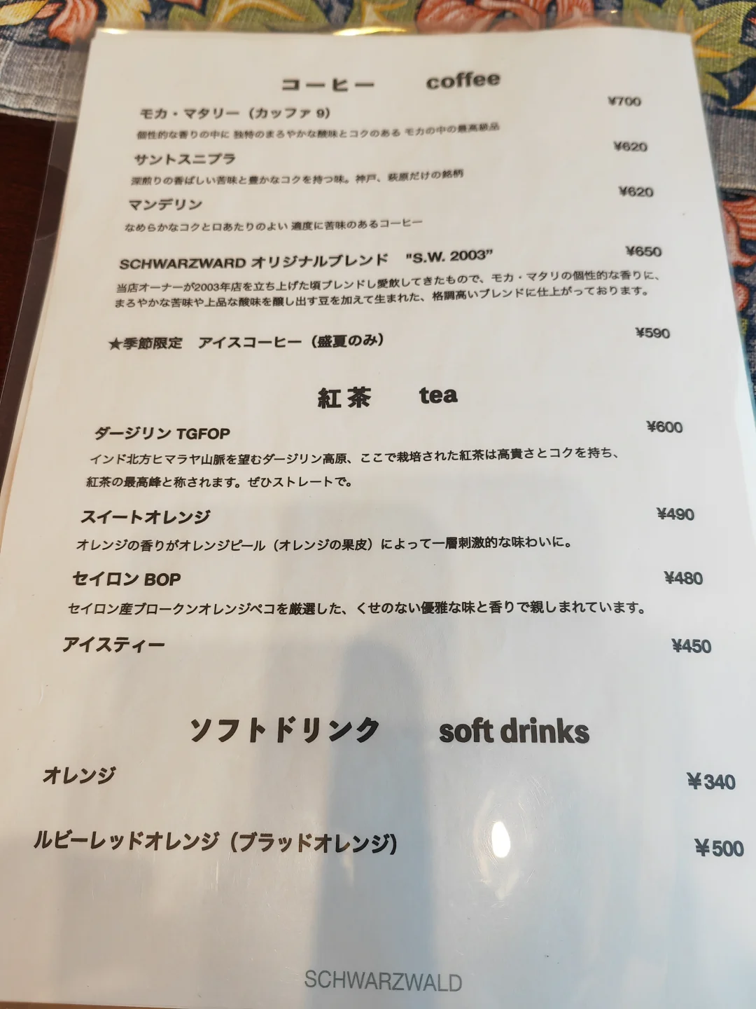 喫茶室提供咖啡、甜品、意面等简餐,我去的那天是下午3点,刚好只供应甜点。
