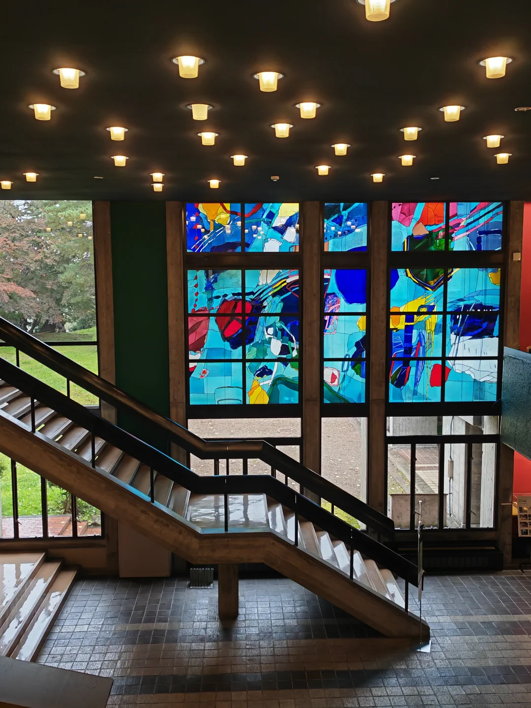 这座市民会馆由日本近代建筑大师 前川国男设计。走进馆内,能感受到昭和时期特有的厚重氛围,还可以近距离欣赏由佐野缝女士创作的原画大型彩绘玻璃。