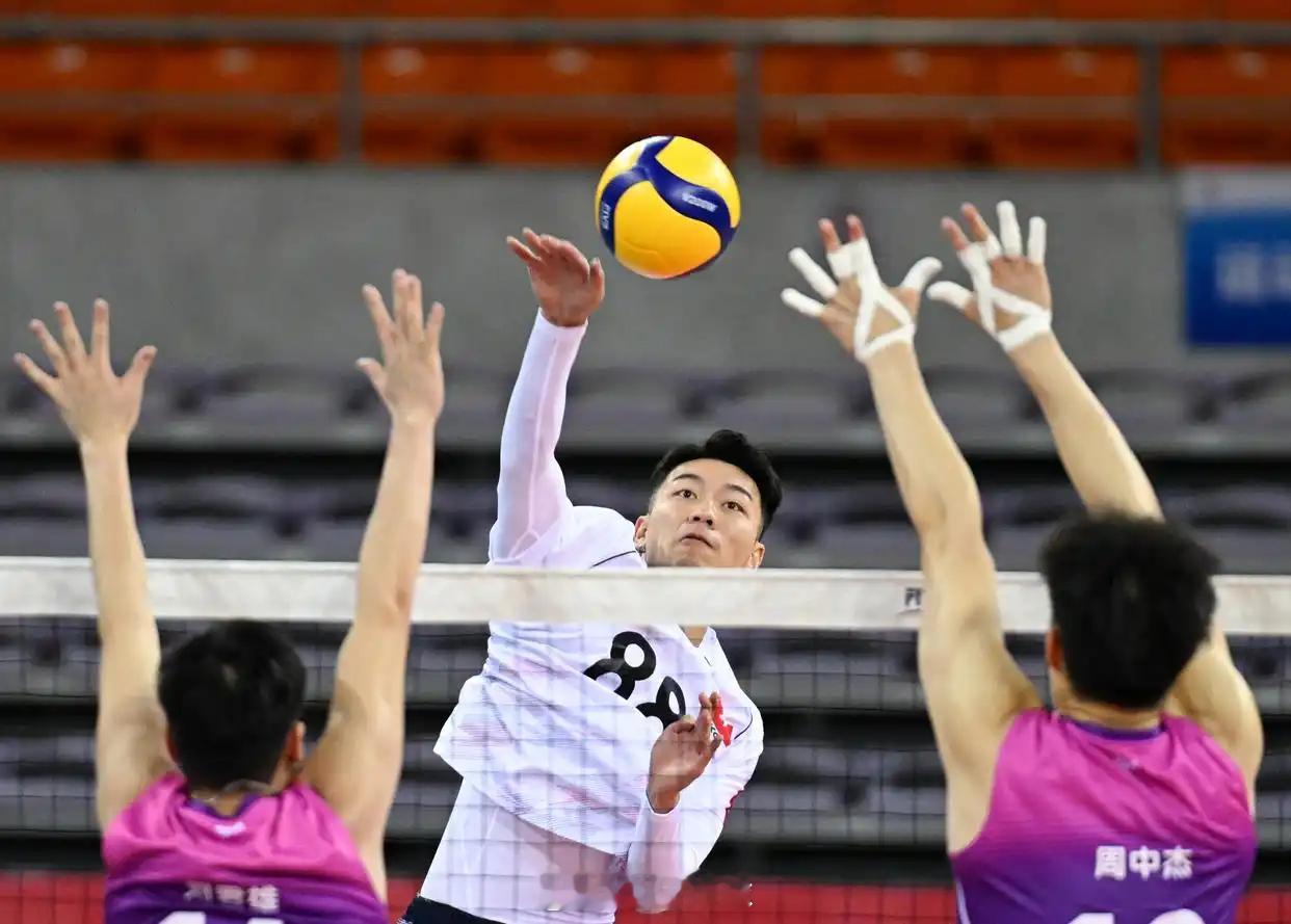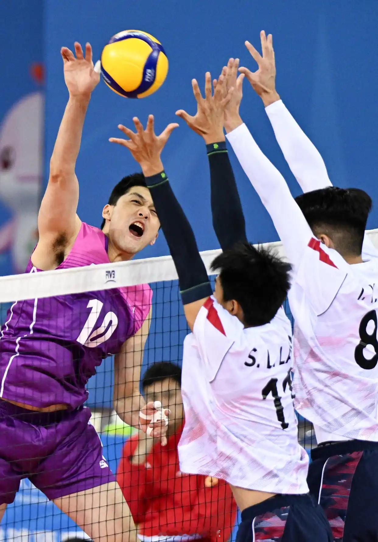 新华社组照: 男排小组赛,11月11日,A组的四川男排3-0香港男排(新华社记者 陈钟昊 摄)。