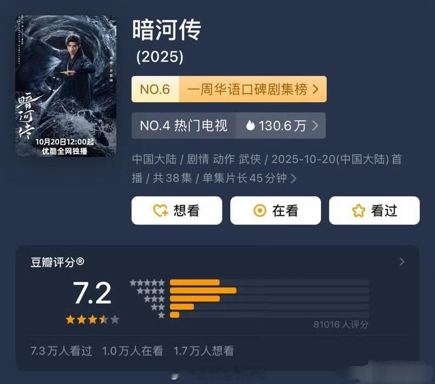 龚俊暗河传外网评分涨到9.0分! 豆瓣评分涨到7.2分!