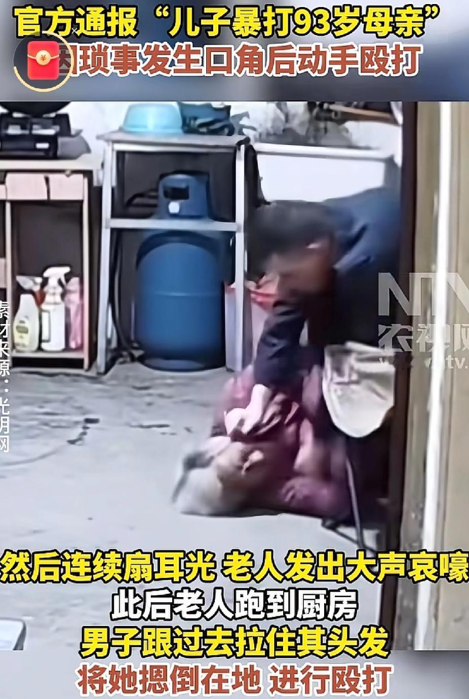 太不是人了! 江苏一男子对93岁老妈下狠手,扇耳光,拽头发摁地上打,网友:养老竟养出仇人? 这男子行为实在恶劣,93岁老母亲本应安享晚年,却遭他如此对待。他的暴力举动令人发指,完全违背了人伦道德。 从视频里能看出老人的无助,被儿子打骂时毫无反抗之力。而旁边小女孩的害怕神情,也反映出这一幕对孩子造成了极大的心理冲击。 无论老人有何过错,都不该用暴力解决。养育之恩大于天,他这样做不仅伤害了母亲,也给社会带来了不良影响。 有网友评论这是她紧紧搂在怀里,日夜无微不至的照顾,一口一口奶水喂出来的亲儿子,盼着长大,盼着说话。。。盼来了一顿顿的暴打[我想静静]真是寒心❤️