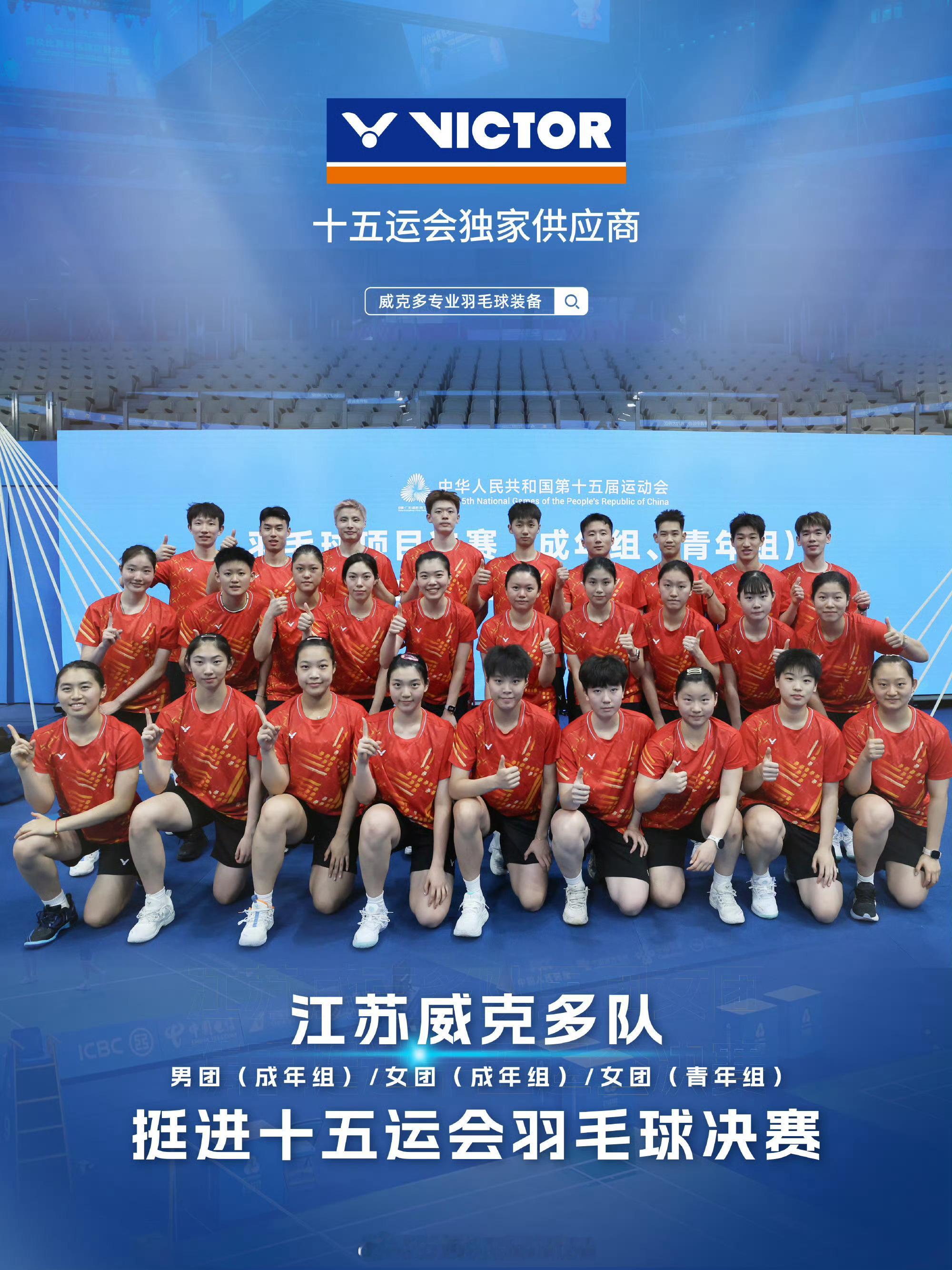 本届全运羽毛球团体赛,江苏威克多队在成年组男女团以及青年组女团上均表现优异挺进决赛,下午2点将优先展开青年女团冠军的争夺,预祝取得优异的成绩!