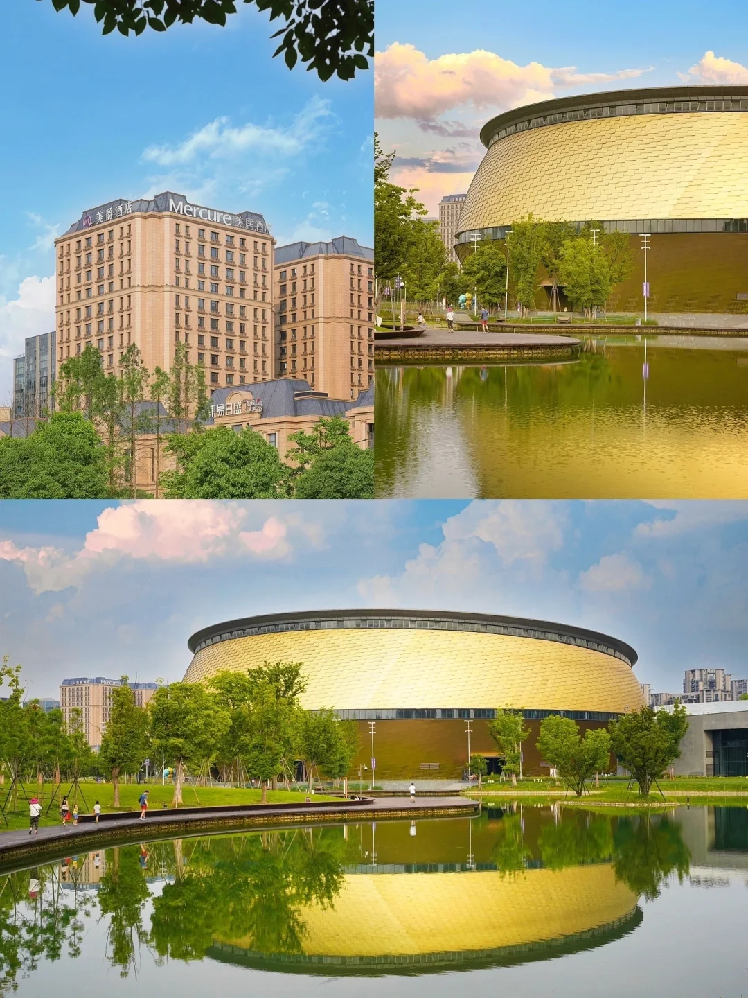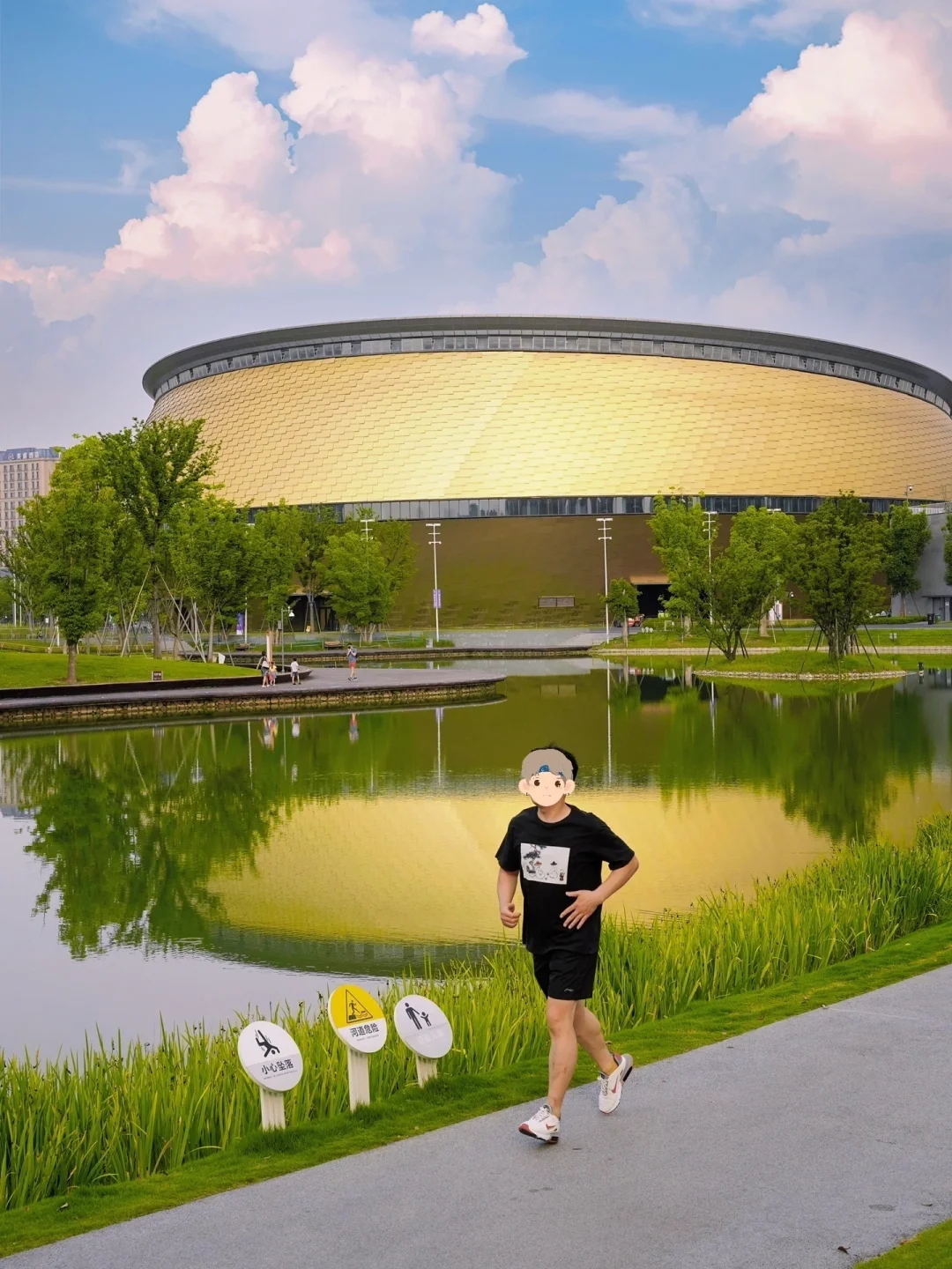 这里是亚运会乒乓球比赛场馆,地标建筑和湖中倒影很出片,绿化非常好🍃适合遛娃露营散步,