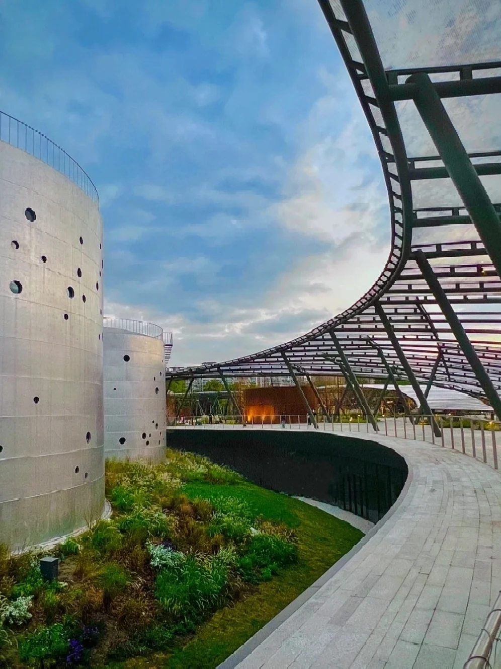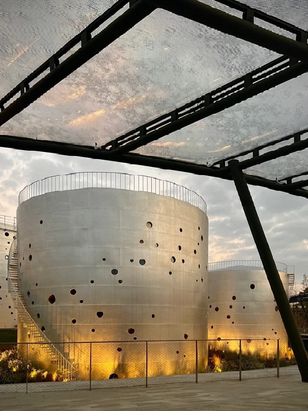 浓浓现代工业风的油罐建筑🛢️是日本建筑大师隈研吾团队设计,由小河油库改建而成