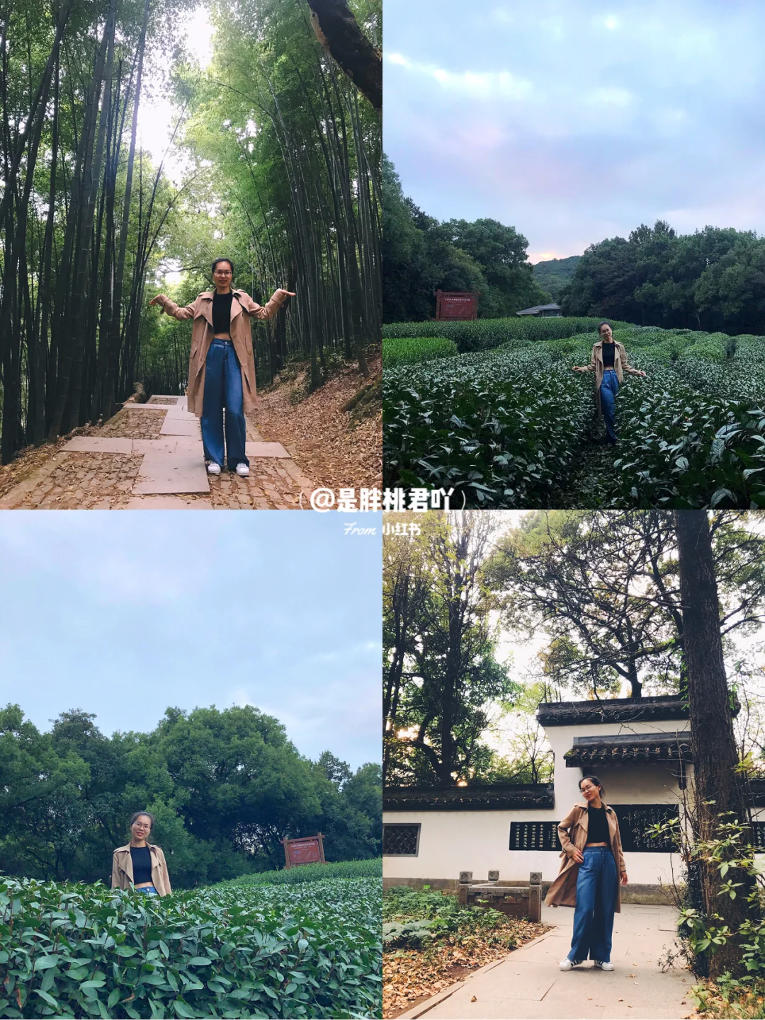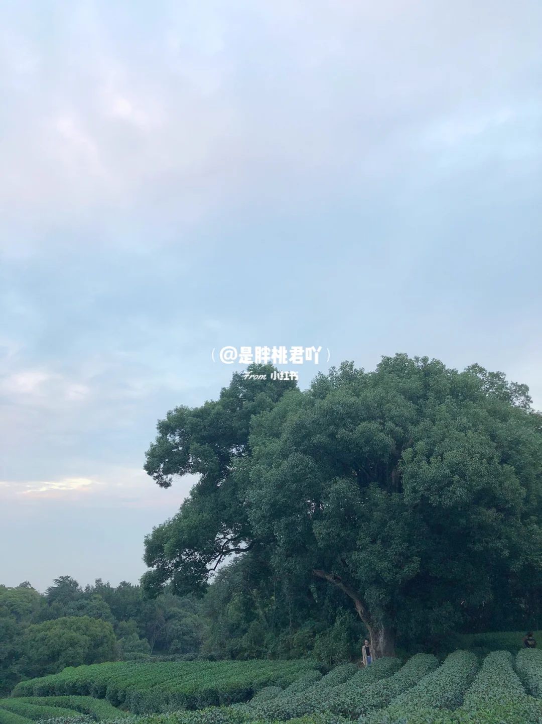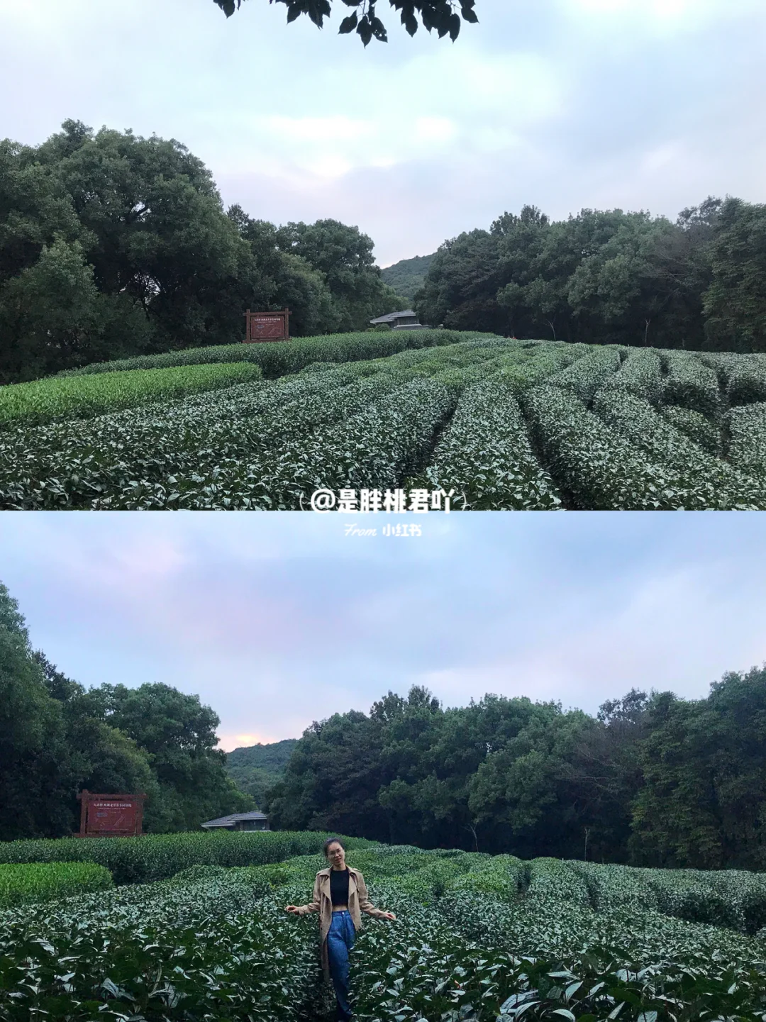 🍃我们17:30左右到了一片视野很广阔的茶园,牌子上写着“九溪牌 西湖龙井茶茶园基地”。哇!有种风雨过后看见彩虹的心情!