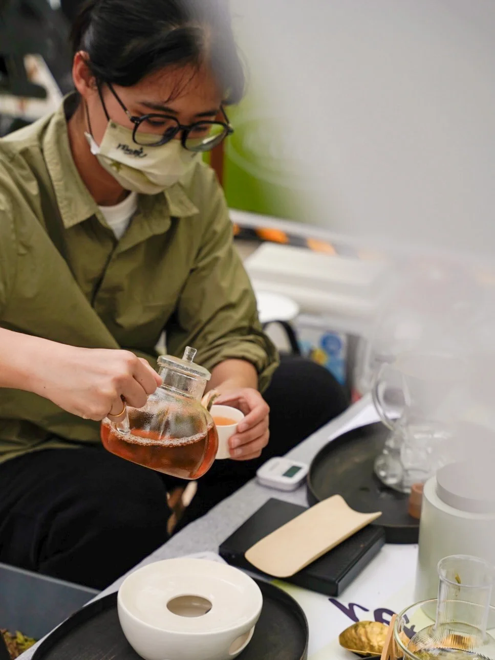 坐在周四晚摊位免费喝茶,看茶艺师现煮现泡新鲜春茶,没有故事交换也可以喝🤣从摊位经过的人都会被小姐姐热情邀请坐一坐品茶闲聊时光真的很惬意