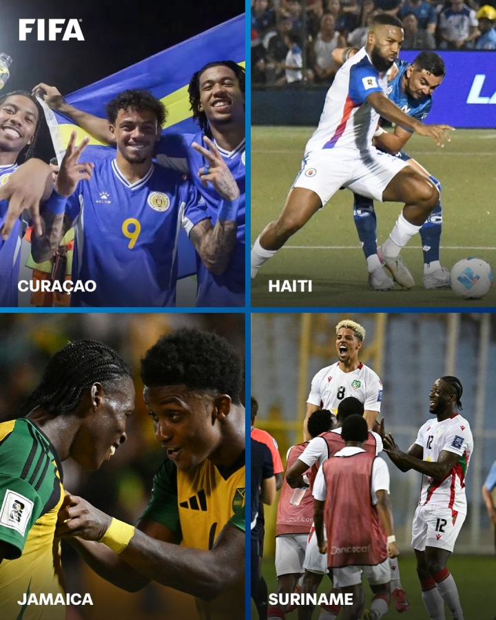 直播吧11月13日讯中北美区世预赛即将进行最后两轮,FIFA官方晒图预热,四支加勒比海地区球队有望晋级2026世界杯,分别是库拉索、海地、牙买加和苏里南。