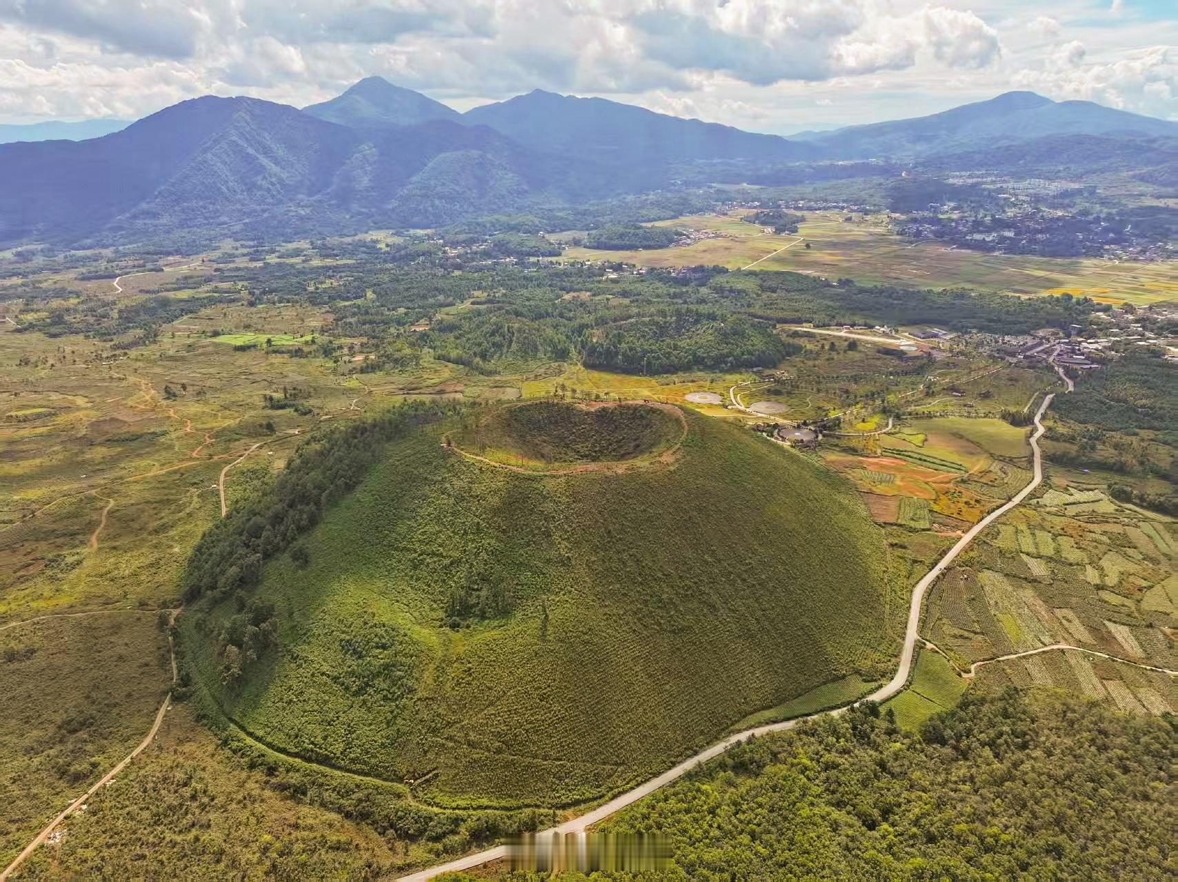 这次来腾冲参加试驾会,安排的试驾路线里有火山地质公园。印象里的火山都是如巴厘岛那样,然而大空山、小空山是两座小山丘,登顶后也就是被草和植被覆盖的凹坑。 前两图是其他媒体老师用无人机拍的,下两图是我们团队同事用手机拍的。这地儿就跟图片上看看,或者飞个无人机拍拍得了,专门买票进来爬,是没太有必要的。