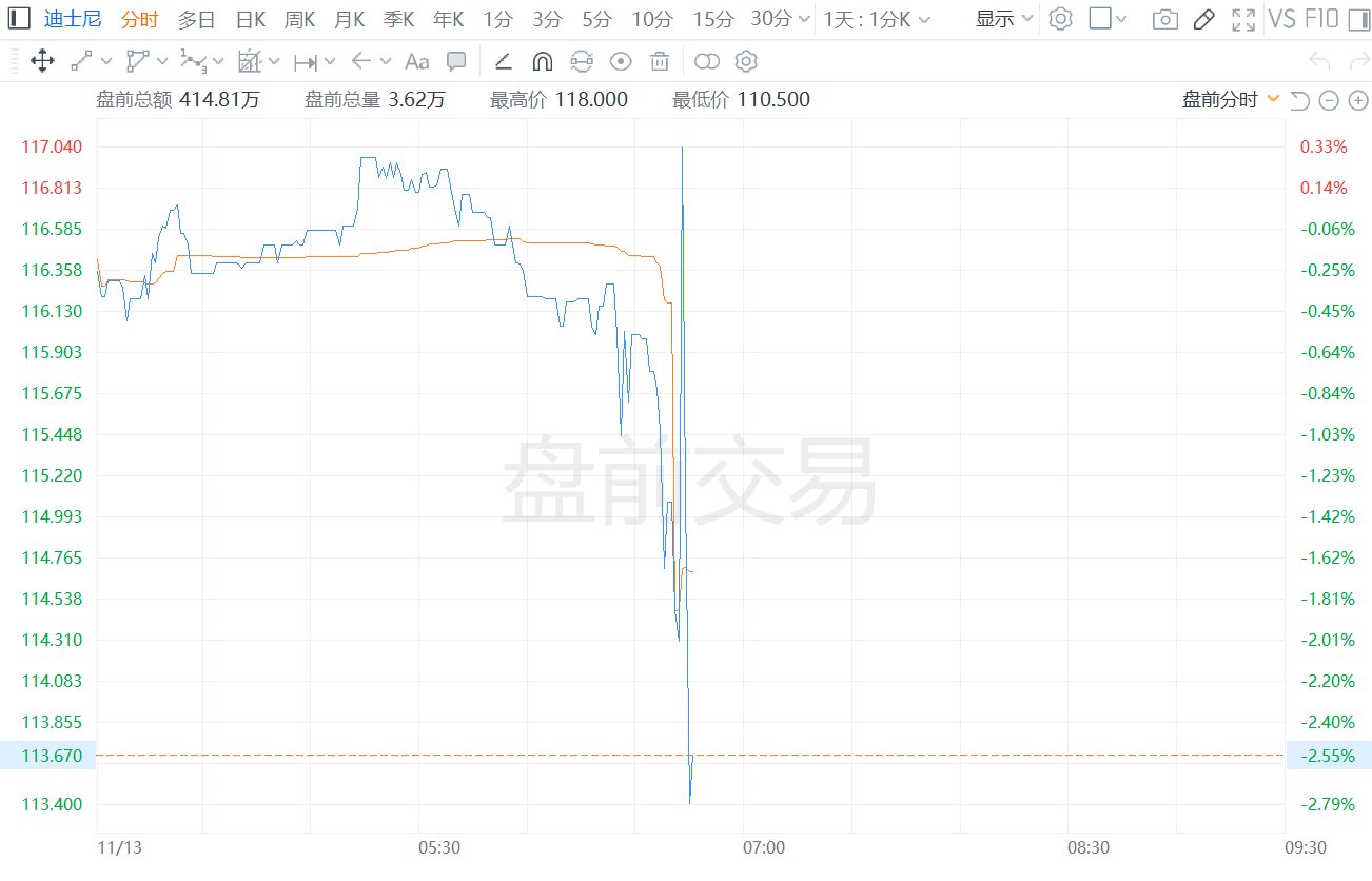 格隆汇11月13日|迪士尼:第四季度营收224.6亿美元,预估228.3亿美元;调整后每股收益1.11美元,预估1.07美元。预计2026年资本支出90亿美元,预估78.8亿美元;预计2026年营业现金流190亿美元,市场预估168.6亿美元。业绩公布后,迪士尼盘前跳水跌逾2%。