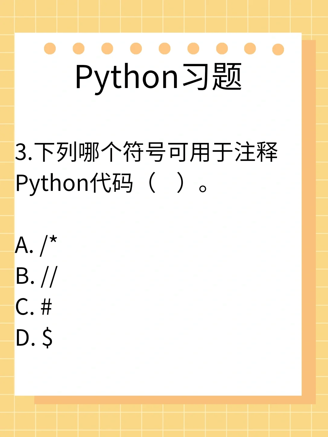 Python习题[零R][一R] ~ 经过前面两天的学习之后[派对R][派对R] 我们还是需要做点题来巩固一下[派对R][派对R],加深一下印象。 ~ 这三道都是很简单的基础题了,会做的小伙伴请把你们的答案放在下面👇🏻哦❗❗❗ [火R][火R][火R]我到时候也会公布正确答案哦!!! ~