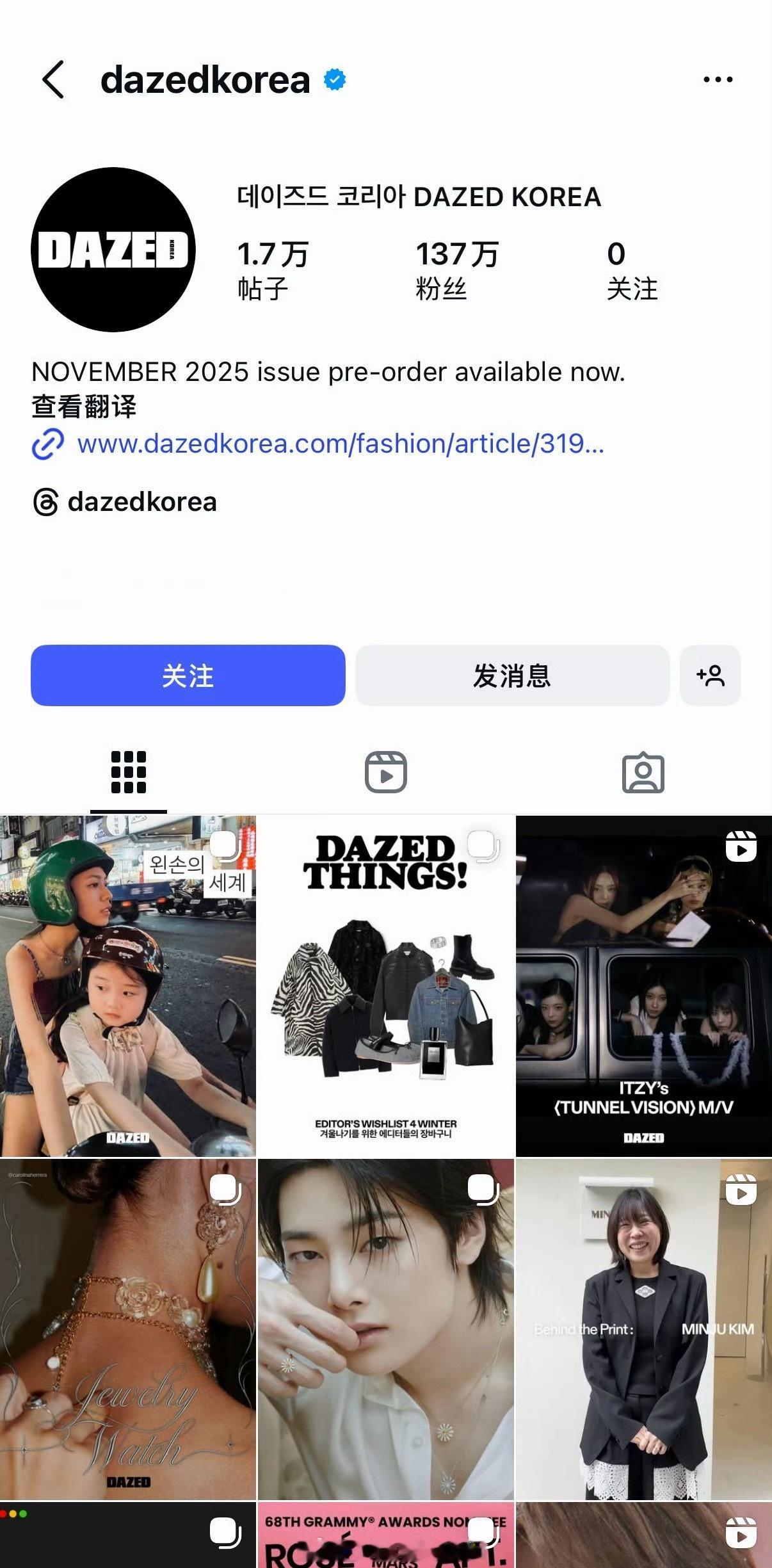 韩国一线与W齐名的杂志《Dazed Korea》因为联系不上直接在赵露思ins下