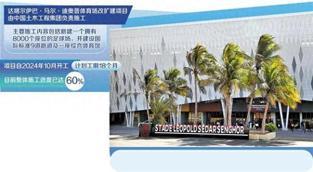 该项目由中国土木工程集团负责施工,主要施工内容包括新建一个拥有8000个座位的足球场,并建设国际标准9道跑道及一座综合体育馆。项目自2024年10月开工,计划工期18个月,目前整体施工进度已达60%。国际奥委会官网显示,作为2026年达喀尔青奥会的重要配套设施,体育馆将承办田径项目赛事。