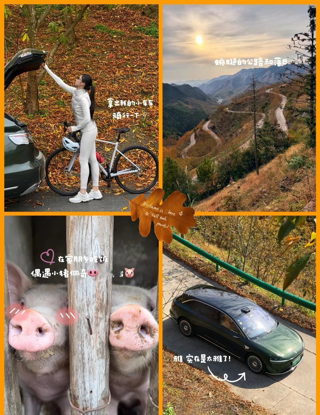 追一场具像化的秋🍂 我总觉得 秋天是一个需要被“捕捉”的季节 它不像夏天那样热烈直白 也不像冬天那样凛冽分明 它的美是含蓄渐变的 是藏在每一片叶子的脉络里 每一缕阳光的温度里 于是为了抓住这转瞬即逝的美景 跟好友一起开着享界S9T 来了一趟说走就走的“4➕2”公路旅行 我们选择的是皖浙天路 听说安徽和浙江文旅最近在炒cp? 那皖浙天路 必须首当其冲呀~ 牛马友好 杭州出发当天就可以往返 导航到“家朋乡”在梅干岭观景台望下去时 层层叠叠的梯田和白墙黛瓦的村落 还很幸运看到了晒秋景色 沿着公路还骑行了一段 晚霞照在身上暖暖的 秋风吹在脸上又有一丝凉 正是舒服的时节啊 这趟的旅程 让我们深刻地体会到 最好的旅行 不是抵达一个目的地 而是在奔赴与探索之间 找到属于自己的节奏 我们追寻的是那份“在路上”的自由 是逃离城市喧嚣后内心的那份宁静与辽阔 皖浙天路可玩性很高 不仅可以自驾观赏 还可以骑行穿梭在大自然~ 所以选择了享界S9T作为这次的旅行搭子~ 它的空间很大 公路车都可以轻松装下 满足了我的骑行梦 操控性比suv好~ 女生真的需要这种 可以随时实现“人生是旷野”的初心 第十五届安徽国际文化旅游节 十一户外漫游 骑车去跑山 秋色入我家 皖浙天路 秋天 落叶 驭见人生旷野 享界S9T 享界 路书计划 皖浙CP的松弛感是天路给的驾游安徽皖美如画