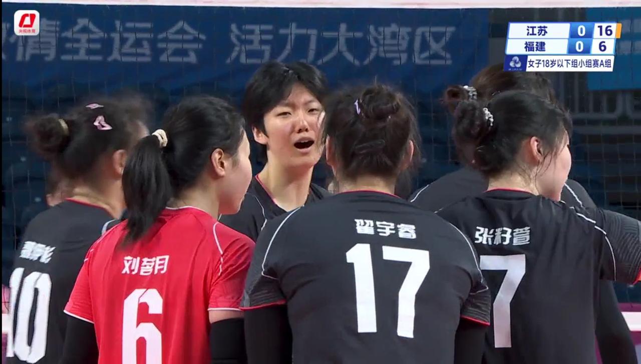 [U18女排全运会]小组赛:江苏——福建 实时战况: 14日下午13:30分,全运会U18女排江苏——福建的比赛准时打响。第一局比赛开始,1:0,江苏得分。2:0,翟宇睿吊球得分。3:0,福建暂停。5:0,6:0,翟宇睿吊球。 6:1,7:1,翟宇睿。8:1,翟宇睿。9:1,9:2,10:2,陈晓辉吊球。10:3,福建发球得分。11:3,翟宇睿打手出界。11:4,11:5,12:5,魏伊杉扣球。I2:6,福建扣球。13:6,魏伊杉把手出界。14:6,翟宇睿后攻。15:6,福建二次暂停。18:8,19:8,19:9,福建扣球得分。20:9,20:10,21:10,22:10,陈晓辉打探头。22:11,福建扣球。23:11,陈晓辉快攻。24:11,郭中楠拦网。25:11,江苏胜第—局,大比分1:0江苏领先! 第二局比赛正在进行中……