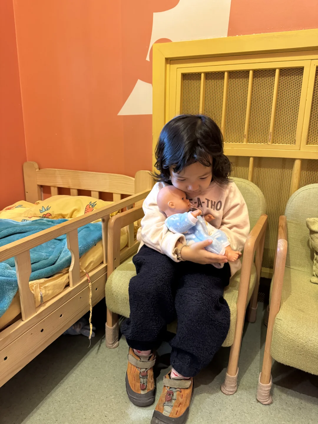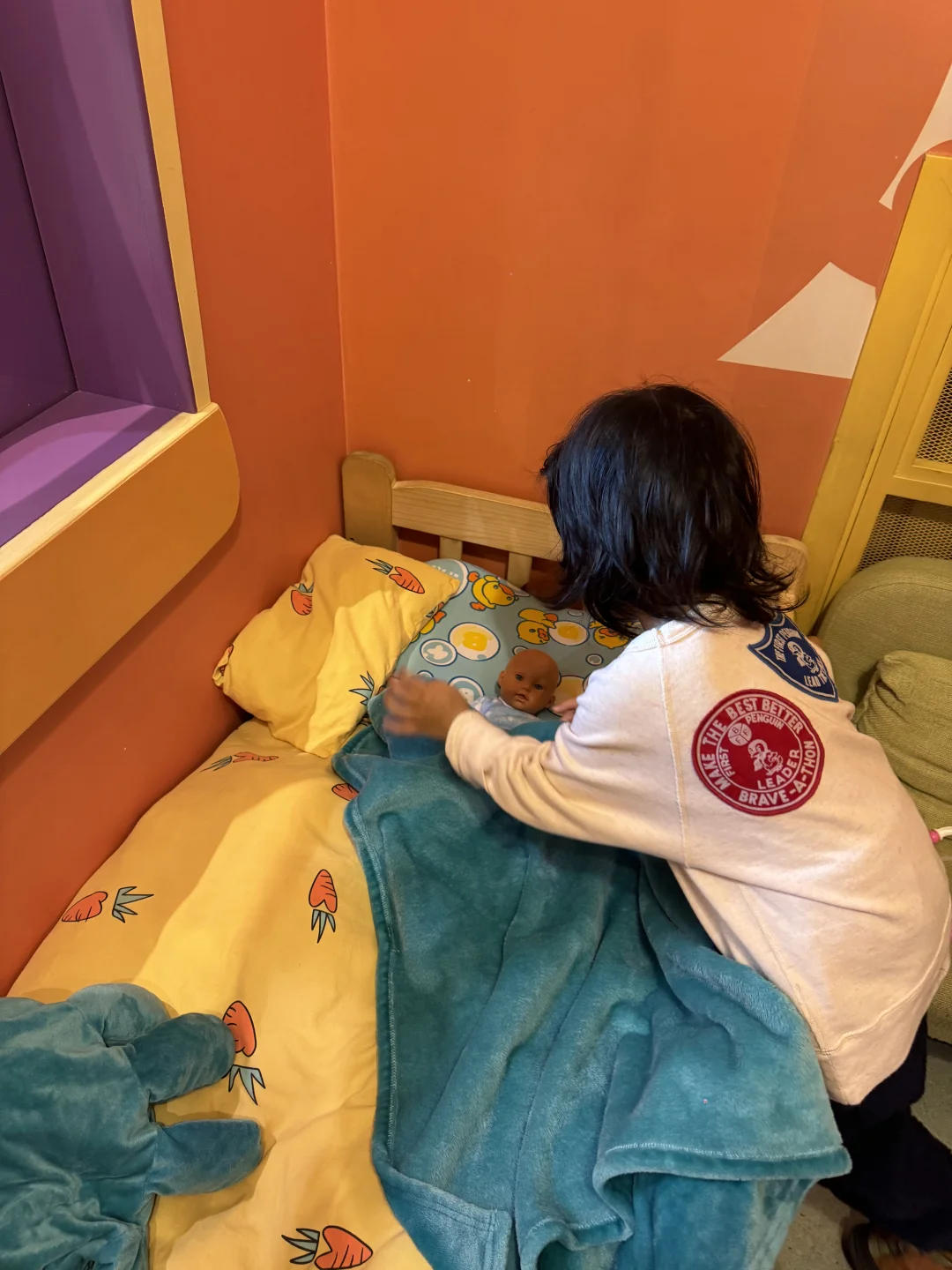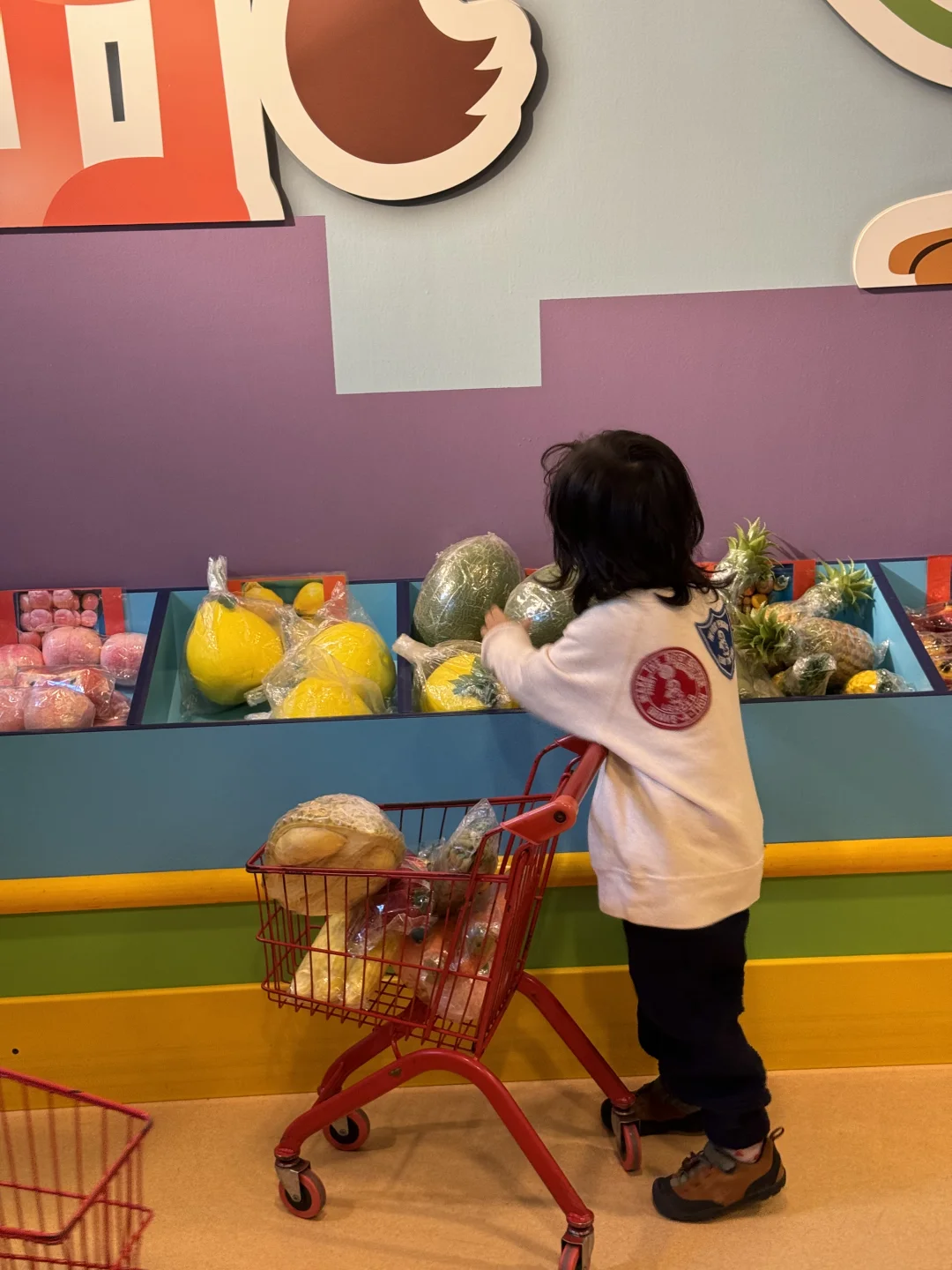 夸一下超市+厨房:优秀在果蔬很接近实物,厨房旁边有“餐厅”,可供小朋友们过家家做了菜端给家长吃。