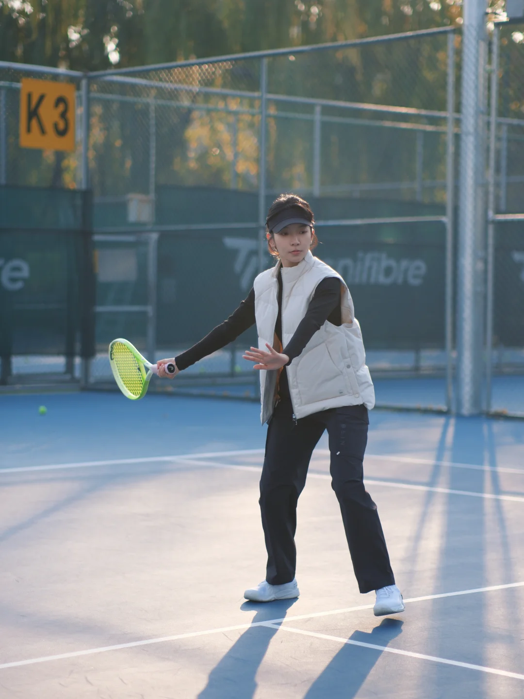 这周天气暖和很多 立马把网球课约起来了 很神奇 每次站到球场 不管打的技术怎么样 心情都会大好 这两次上课 教练夸我进步啦 我自己也感觉击球的瞬间更轻松 节奏也比之前好一些 但还是有太多问题需要调整 脚步有时候也走的很迷糊 北京的冬日下午 球打着打着 太阳慢慢落下 却一点都不感到冷 穿着单件长袖就完全可以 夕阳落在身上 是被幸福眷顾着的样子 期待越来越进步呀