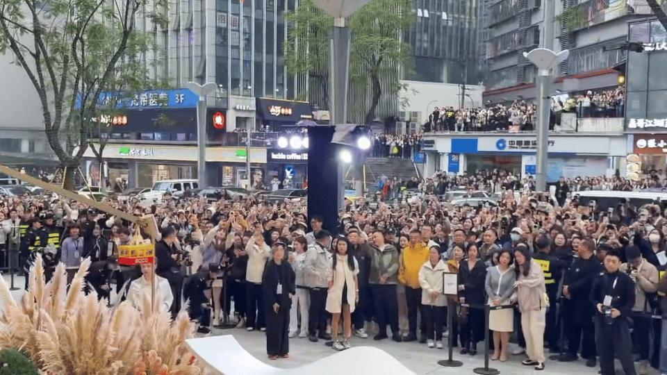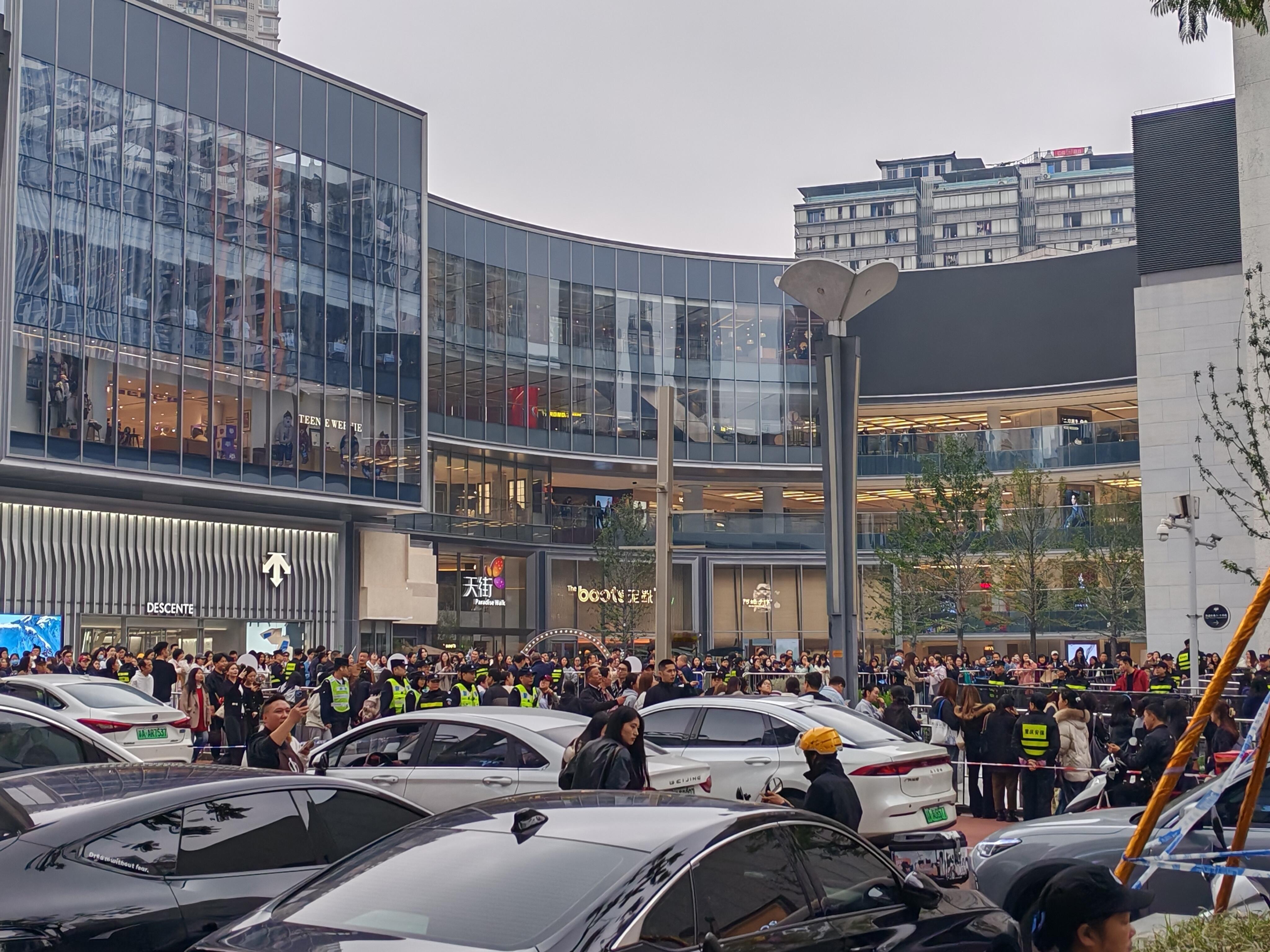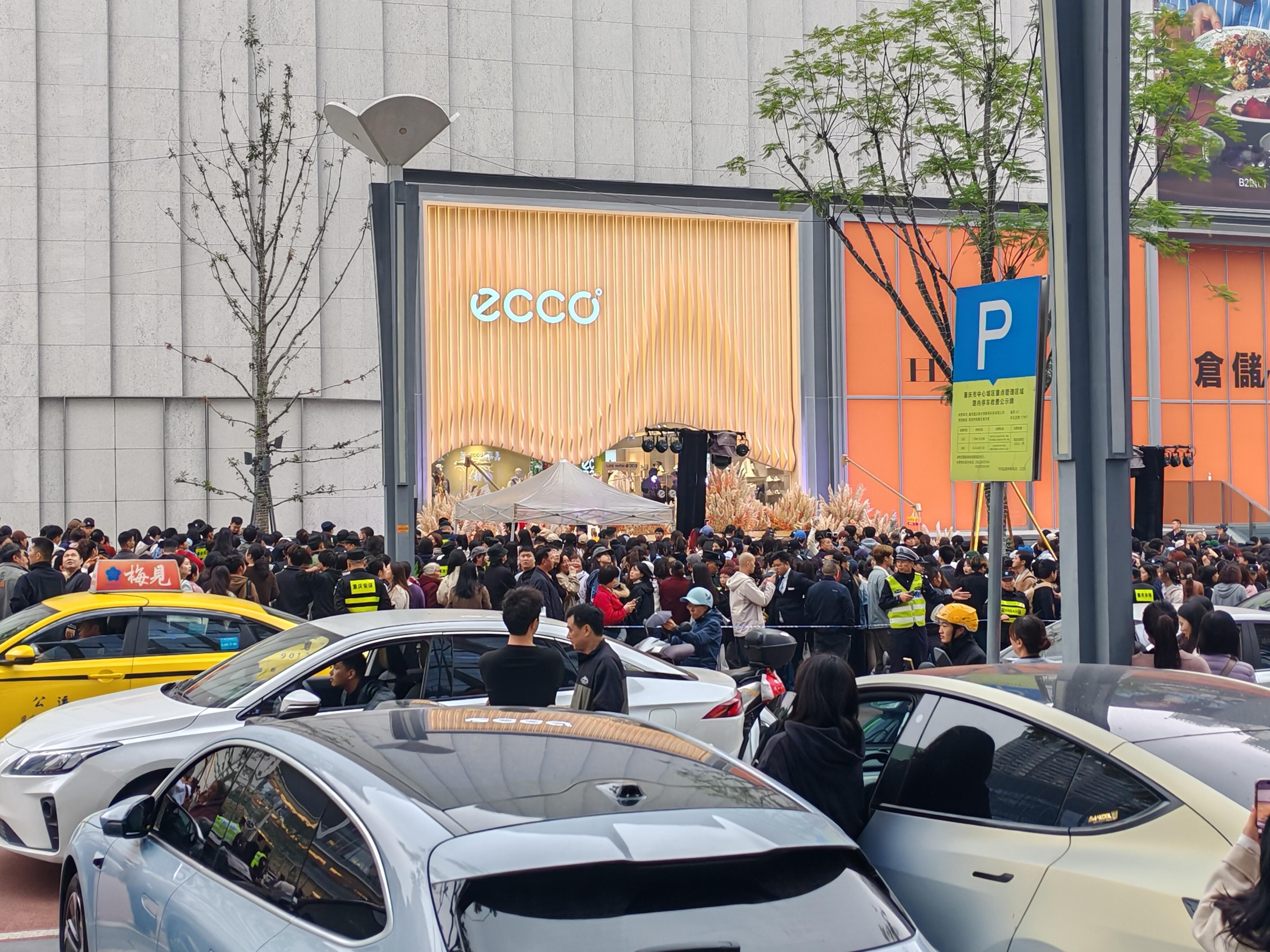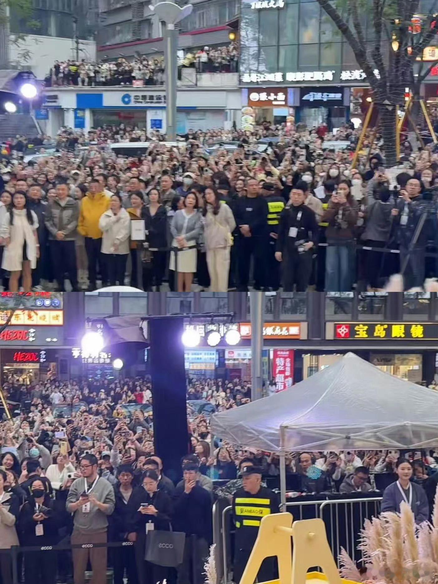 黄景瑜︱ECCO线下活动︱重庆20251114北城天街现场群众直拍全景展台前此刻是这样的人气,鲸鱼已经到店内,在📕看大家的直拍真爽,户外展台能站人的地方都站满了,临近主干道,再靠外的地方就没法站人了,这地点有点影响妹子们的发挥啊