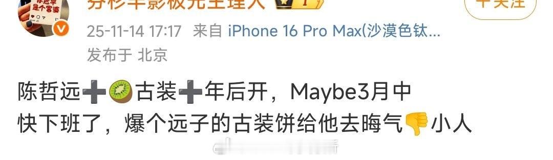 不er 这几个字连在一起怎么看怎么好笑陈哲远能不能接到戏什么时候轮到于歪说话了,据我所知 远子根本不愁没戏拍啊