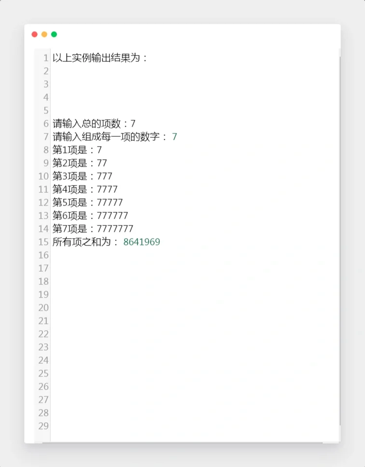 Python经典实例1⃣8⃣ ~ ⭐️题目: 求s=a+aa+aaa+aaaa+aa...a的值,其中a是一个数字。 例如2+22+222+2222+22222(此时共有5个数相加),几个数相加由键盘控制。 ~ 🌟程序分析: 关键是计算出每一项的值。 ~ ❗️❗️❗️本题的重点还是要会计算出每一项的数是多少,最后再把这些数相加即可。 ~