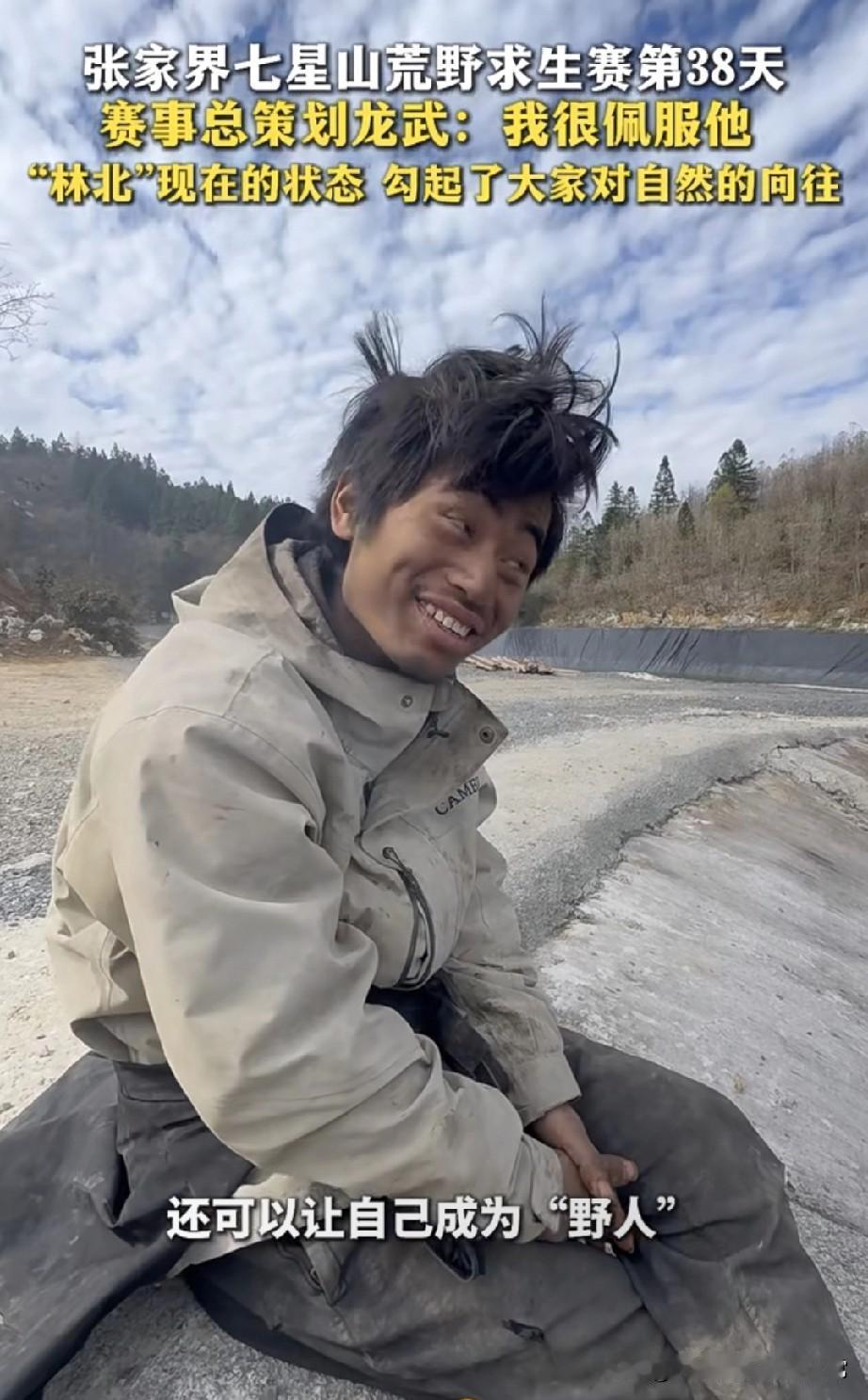 荒野求生的林北,活成了我们不敢活的样子 你敢信?有人在张家界七星山荒野求生38天,活成了“野人”——头发炸成鸟窝,衣服糊满泥,却笑得比中了五百万还敞亮。 赛事总策划龙武说:“我佩服他,这状态勾得人心里发痒。” 是啊,我们每天困在格子间算KPI,他在山里啃野果当“乞丐”;我们纠结奶茶加不加糖,他在自然里当“疯子”。 这哪是求生?明明是把“人生还能这样过”焊死在脸上——不用回消息,不用装体面,脏着、野着,却把我们弄丢的“童年疯劲”捡回来了。 你说,这是摆烂还是活明白了?要是给你38天,你敢放下手机当回“野人”吗?