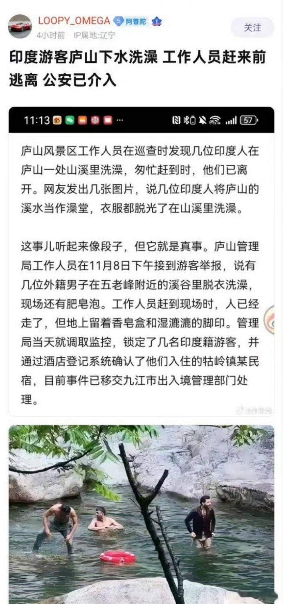 近日,有网友发视频称:今年4月,3名印度籍游客到江西省庐山石门涧景区游玩。期间,
