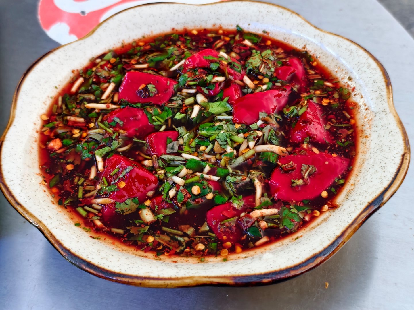 尝试了一下 牛瘪 太带劲了,吃的时候就感觉再很牛亲嘴,这里还吃 凉拌牛血 ,我以为是熟的,结果牛血都是生的