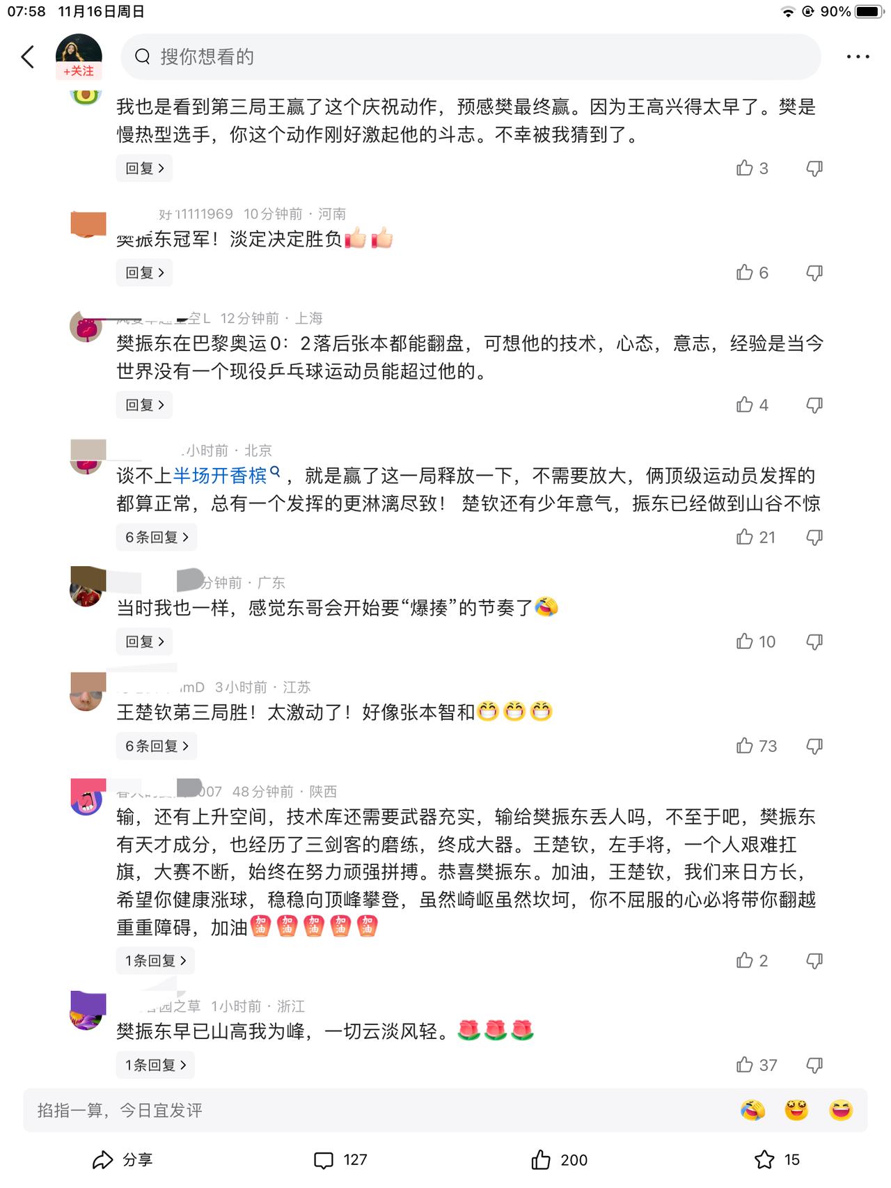 球迷要是真爱看球,就不要过分解读。 都是为国争光的运动员! 王楚钦第三场胜利的时候有一个庆祝动作,有人说半场开香槟,有点像张本。这话不能这样说,侮辱人了我觉得。 那人家第三场拿下了,举手庆祝一下,就是释放一下压力。紧接着就进入第四轮的比赛。论心态,的确没有小胖沉稳。比赛有输有赢,而且历史上他俩有过交锋,小胖赢得多,大头赢得少而已。 比赛千变万化,尊重双方运动员。这是最基本的看球原则。输给樊振东不丢人。左手将,始终在拼大赛。继续努力吧!小胖儿实至名归。最后还有一场与小石头儿的对决,期待。