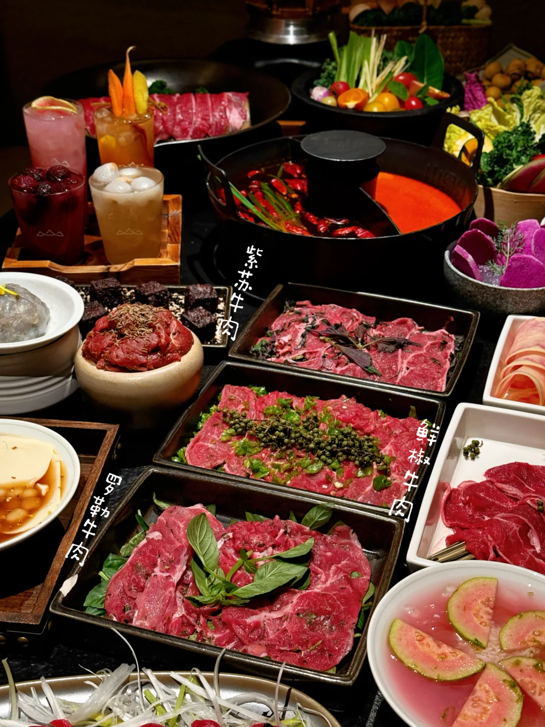 ✔️肉类点了九秒牛肉、木姜子牛肉、罗勒牛肉、虾滑牛肉、紫苏牛肉!