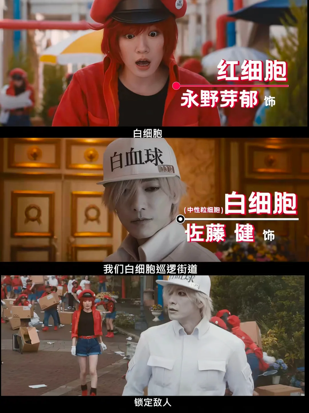‼️人体的不同细胞承担这不同的职责,37万亿的细胞全年无休007,只为守护你的健康!红细胞(永野芽郁饰)运输氧气、白细胞(佐藤健饰)与入侵者战斗,还有无数细胞共同工作,一起坚守阵地!