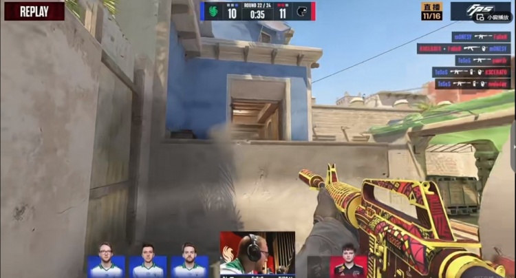 第一局FALCONS抱团准备A区满爆弹一波!yuurih的M4A4混烟双杀,FalleN大狙也击杀一个!瞬间就是5V2的局面了啊!但是m0NESY大狙左右开弓强行三杀顶住了局势!虽然A1绕后的molodoy也是双杀!但是自己没有钳子没时间拆包了!16-15!