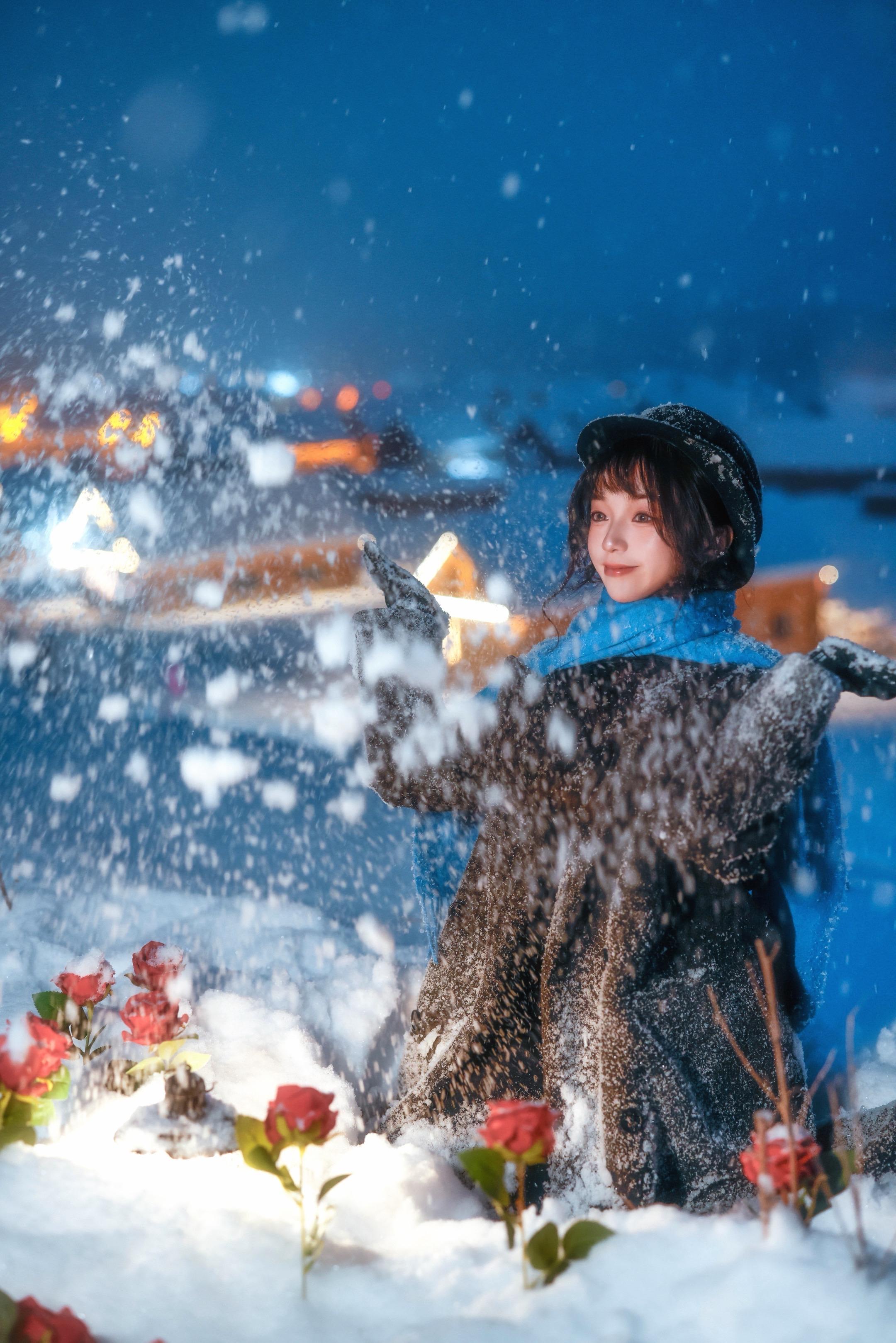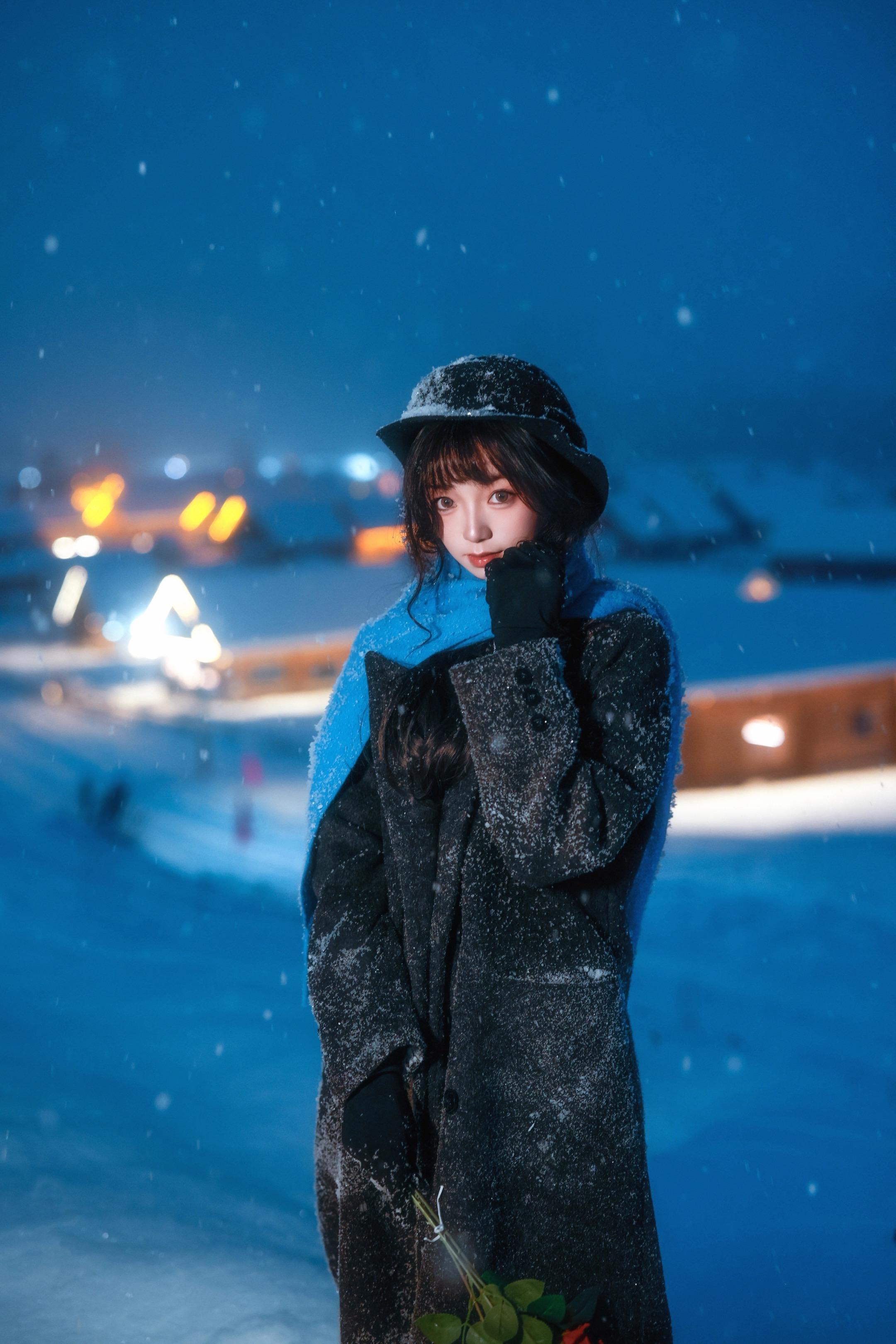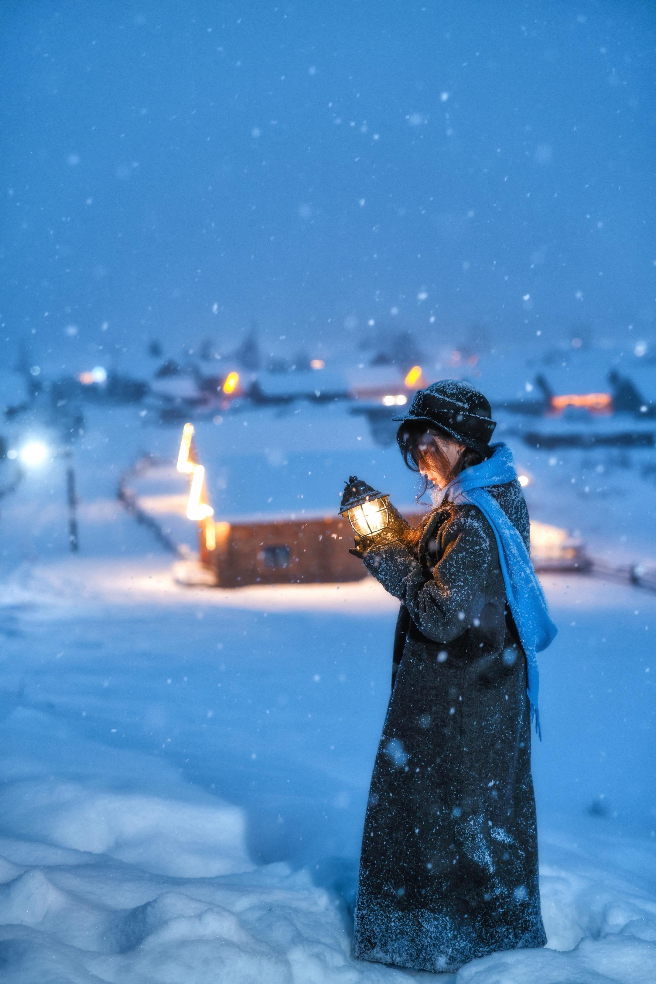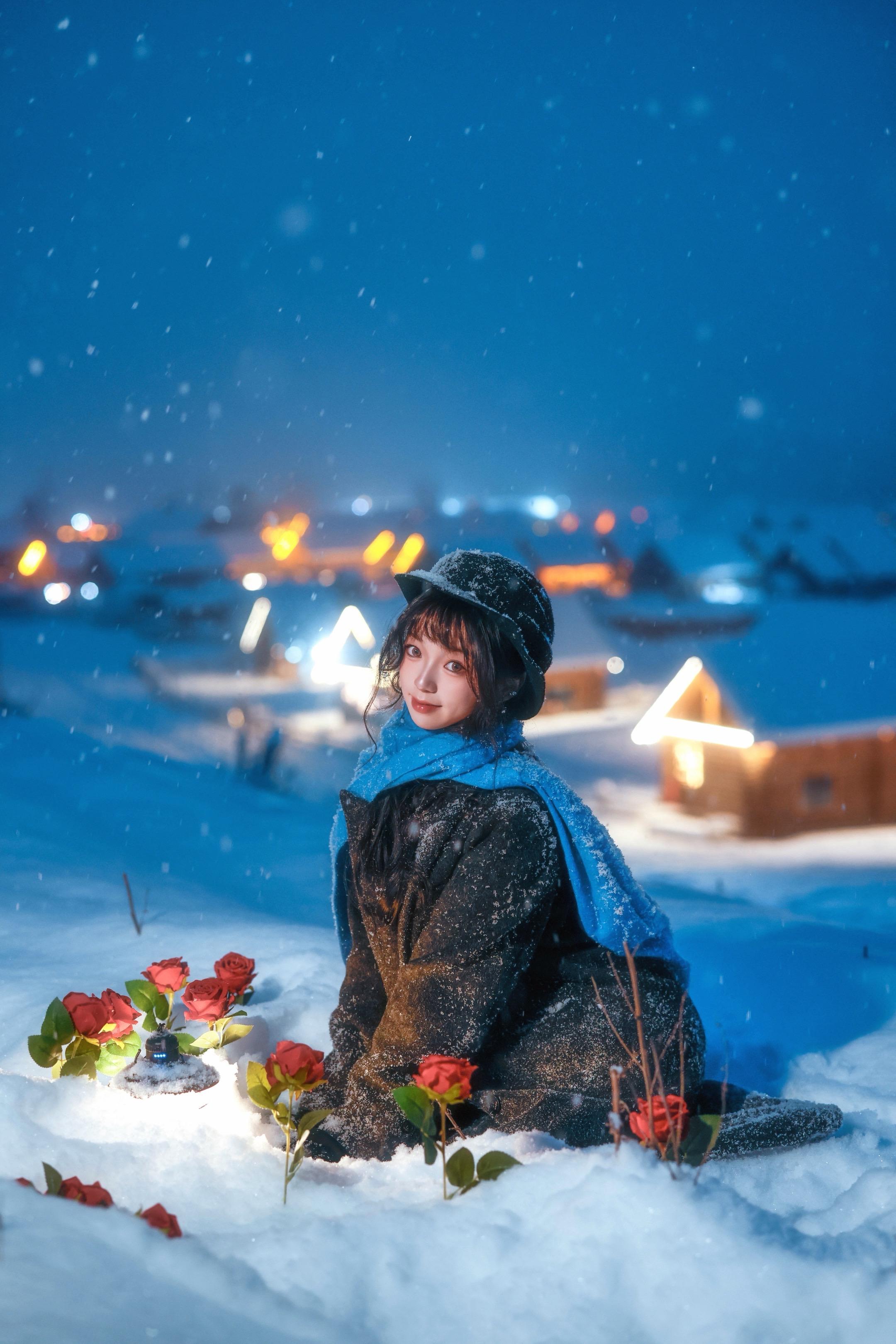 就是太阳刚下山,天还没完全黑透的那一小会儿。整个天空不是死黑,而是像打翻了一块巨大又高级的蓝色墨水盘!💙深邃的群青、温柔的湖蓝,一点点漫过小木屋的屋顶和雪白的山顶,整个世界又安静又梦幻,真的像走进了童话里!