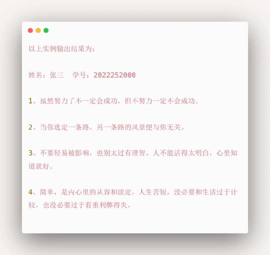Python小项目[零R][六R] ~ [火R]要求: [一R]编写程序创建文件data.txt文件共五行 [二R]第一行存放你的学号和姓名信息 [三R]其余四行存放一句心灵鸡汤 [四R]并将文件内容打印读取和输出在控制台 ~
