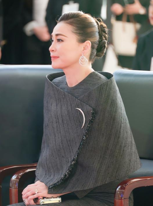 泰国王后的设计师太有创意啦!她为苏提达王后设计的衣服有质感不说还时髦个性,还给人耳目一新的既视感,比如王后陛下穿着深灰色裙与披肩这身,把披肩设计成斗篷款,用月牙款式的纽扣固定住,没想到月牙扣意外成全身亮点之一。 这个月牙扣简简单单的,上面没有镶钻石也什么珠宝,就是这么一个简单的月牙扣,让这身时装裙尽显优雅不说,还给人满满的高级感! 还有王后陛下佩戴的耳坠与月牙扣相呼应,都是带有弧形设计的饰品,即使不是值钱的珠宝首饰,也为王后陛下的高贵气质加分。