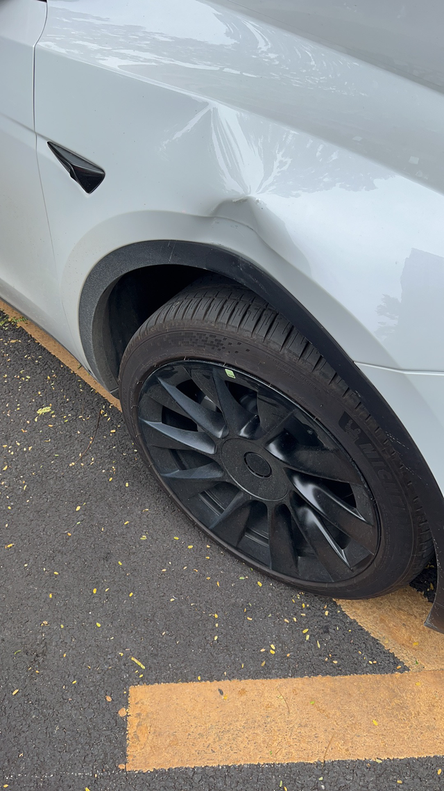 提车不到一个月心疼 开开心心回爸妈家吃个中午饭,停好车,下车走了大概3米左右回头看了一眼车子(真帅),继续走。突然一阵声响。旁边一位大叔倒车,我回头一看,哎呀,原来是碰了我的车!跑过去一看,叶子板凹进去,我在确认下摄像头有没有给碰到,还好没事!大叔下车后,我问大叔,你倒车的时候没有雷达的吗?大叔说,他一边讲电话一边倒车,没注意! 最后报了保险,不修,叶子板整个换掉加赔付了车衣,一共接近6千元。真心不便宜!大家以后停车还是选个好位置